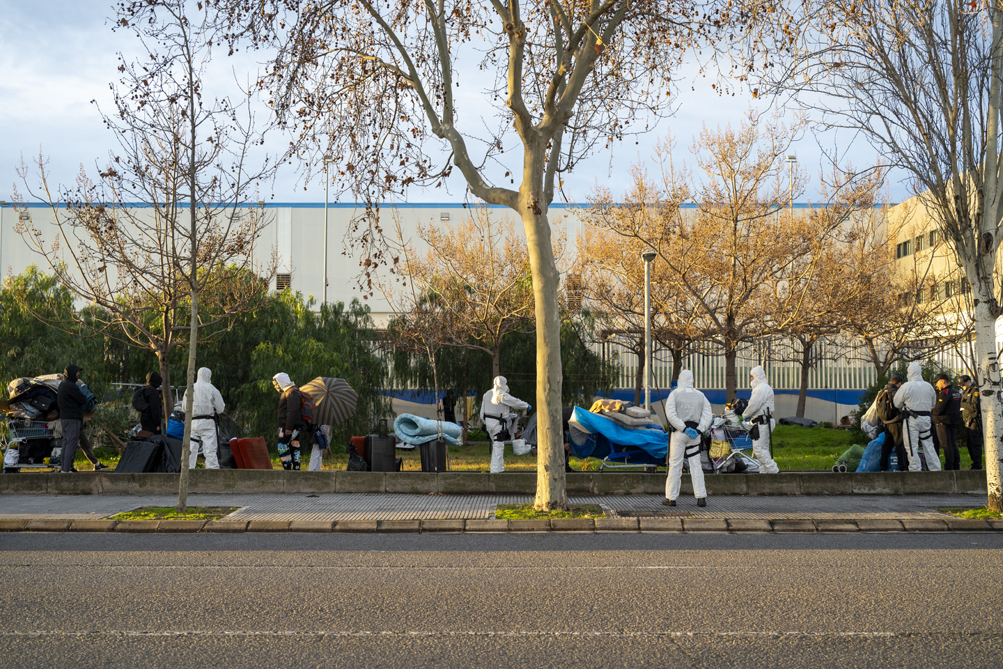 Desallotjament de persones que dormien al polígon de la Zona Franca, a Barcelona, el 10 de febrer | Joanna Chichelnitzky