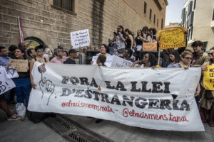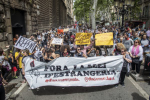 maig 28, 2018El passat diumenge 27 de maig, més de 2.000 persones es van manifestar pels carrers del centre de Barcelona contra la llei d’estrangeria. Fa mes d’un més que va començar la tancada migrant a l’antiga escola Massana i durant aquest temps, s’han reunit amb les diverses administracions per exposar una desena de revindicacions travessades per la llei. Entre les demandes, hi ha l’accés a l’empadronament sense domicili, el tancament dels CIES, obtenció de la nacionalitat sense exàmen o despenalització de la venda ambulant