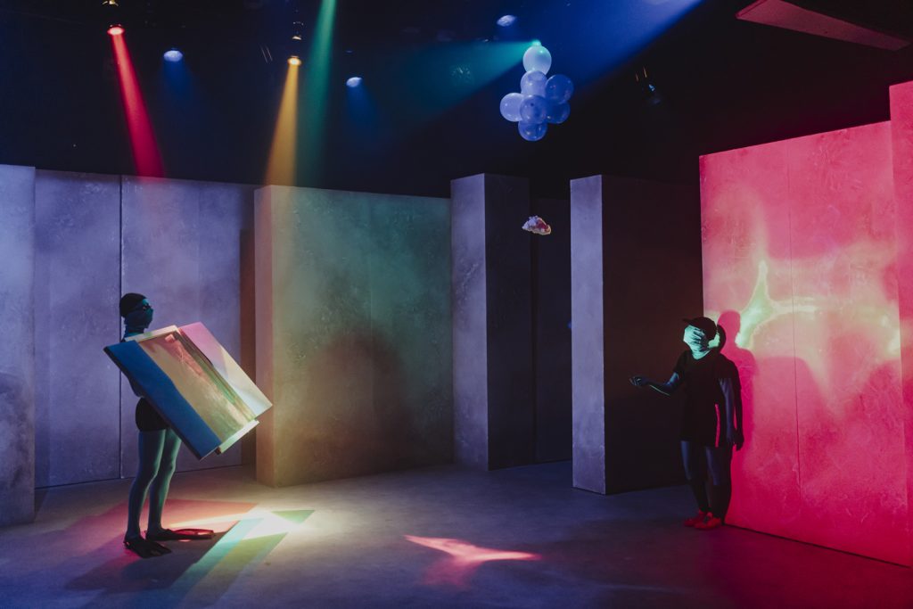 Les dues propostes arriben després d’haver representat espectacles en l’àmbit del teatre de carrer i l’infantil, com Placido Mo o Infinitus. Amb una rebuda realment espectacular per part dels públics i la crítica, aquesta troupe ha fet de la poesia escènica, basada en el cromatisme i el surrealisme, el punt de partida d’una transformació constant de cossos, objectes i formes, que enllacen de manera a la vegada màgica i analògica les arts escèniques amb la plàstica, la il·lustració i l’escultura. El seu llenguatge es deslliura aparentment d’arguments, històries, personatges i textos, i allibera el públic d’aquestes convencions, que sovint representen encasellaments, llasts i penyores. Com si el Magritte s’hagués endormiscat després del segon vermut, en una platja del Mediterrani. A canvi, s’ofereix un encadenament d’impactes escènics, icònics, onírics, plens de vels i tuls i màscares, sota les quals fluctuen tot d’idees subterrànies, intuïcions inconscients, perills que ens interpel·len. Com si s’hagués extret la gravetat, els mals auguris i l’hermetisme d’un show d’El Conde de Torrefiel, per tot seguit reinflar-lo amb gas del riure. La seva singularitat formal pot ser exuberant però mai no és innocent, i disfressa, però no oculta ni neutralitza, la càrrega de profunditat que transporta.
