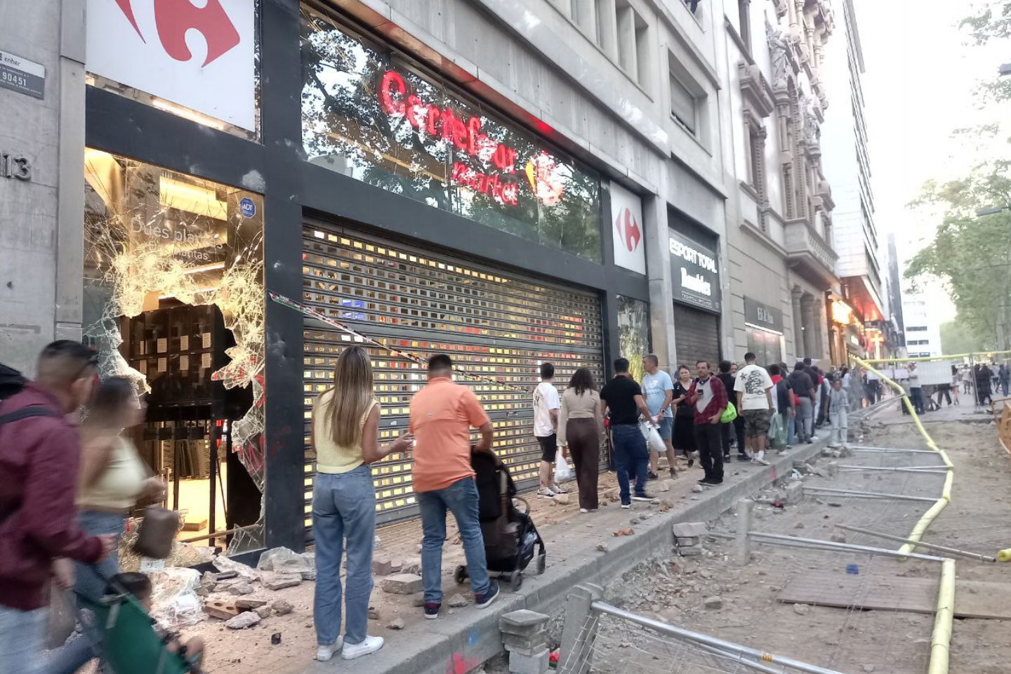 Diversos piquets que sumaven unes 2.000 persones al centre de Barcelona, han fet tancar el Carrefour, el McDonald’s, el Starbucks, el Zara i el KFC de les Rambles. Són empreses incloses en la llista del BDS com a còmplices del genocidi i l’ocupació de Palestina.