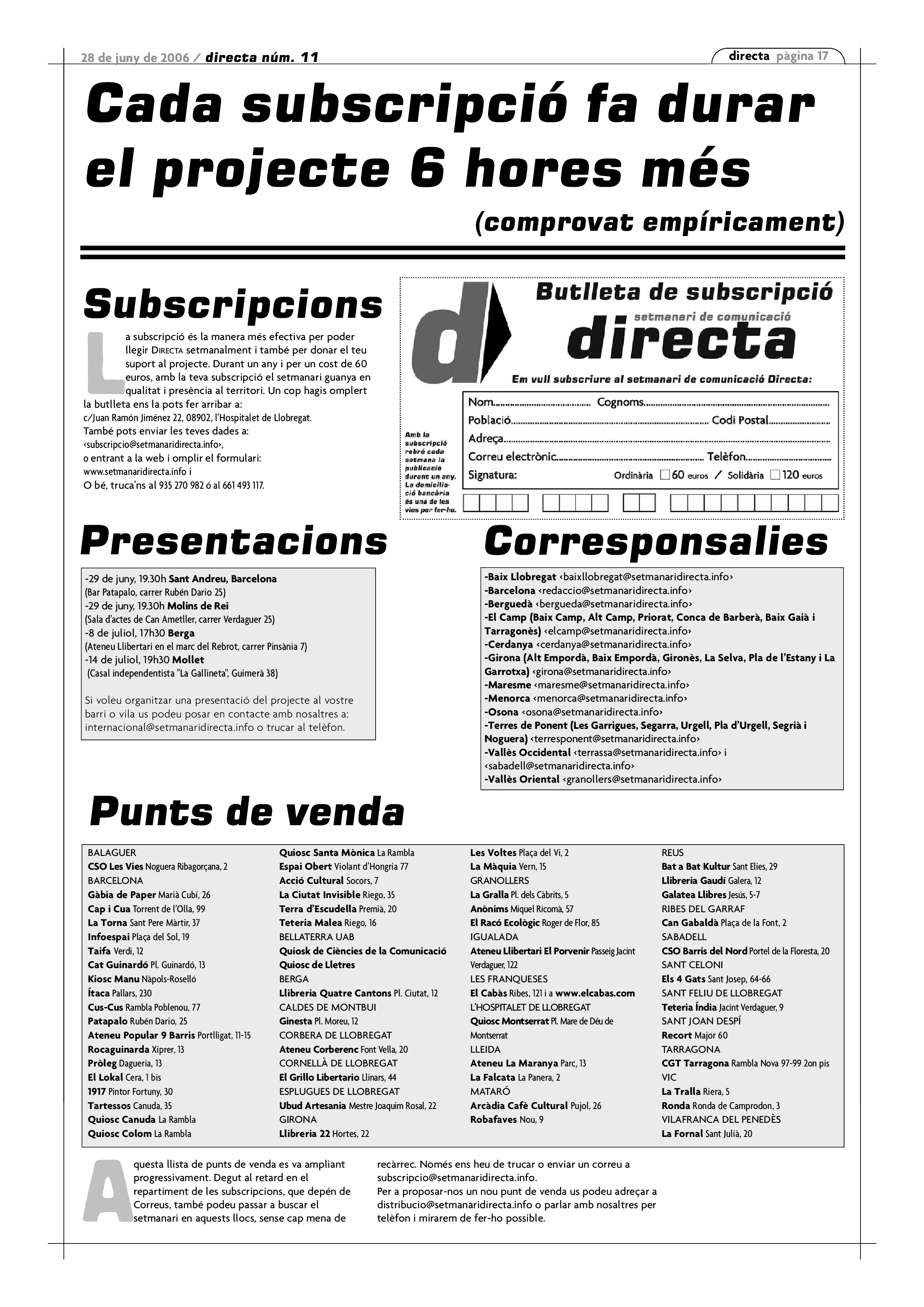 'Directa 11' Pantalla completa Descarregar 1 2-3 4-5 6-7 8-9 10-11 12-13 14-15 16-17 18-19 20-21 22-23 24-25 26-27 Donacions Fes una donació 5€ 10€ 20€ 50€ + FES UN DONATIU