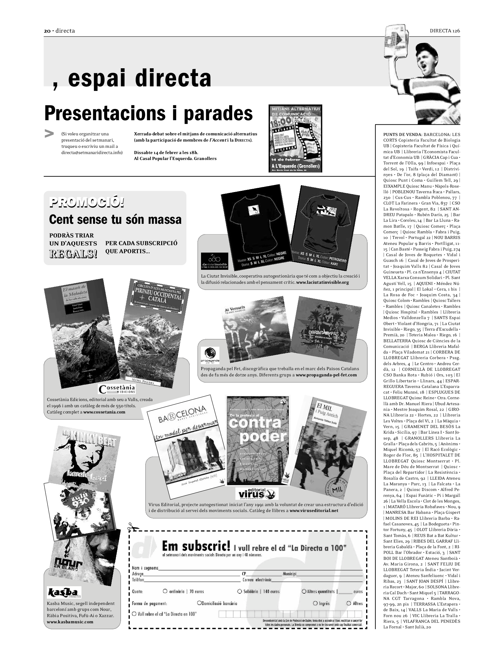 'Directa 126' Pantalla completa Descarregar 1 2-3 4-5 6-7 8-9 10-11 12-13 14-15 16-17 18-19 20-21 22-23 24-25 26-27 Donacions Fes una donació 5€ 10€ 20€ 50€ + FES UN DONATIU