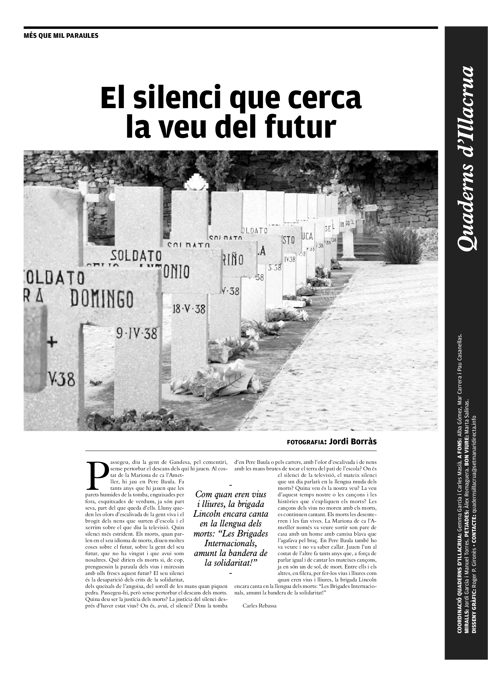 'Directa 177' Pantalla completa Descarregar 1 2-3 4-5 6-7 8-9 10-11 12-13 14-15 16-17 18-19 20-21 22-23 24-25 26-27 28-29 30-31 Donacions Fes una donació 5€ 10€ 20€ 50€ + FES UN DONATIU