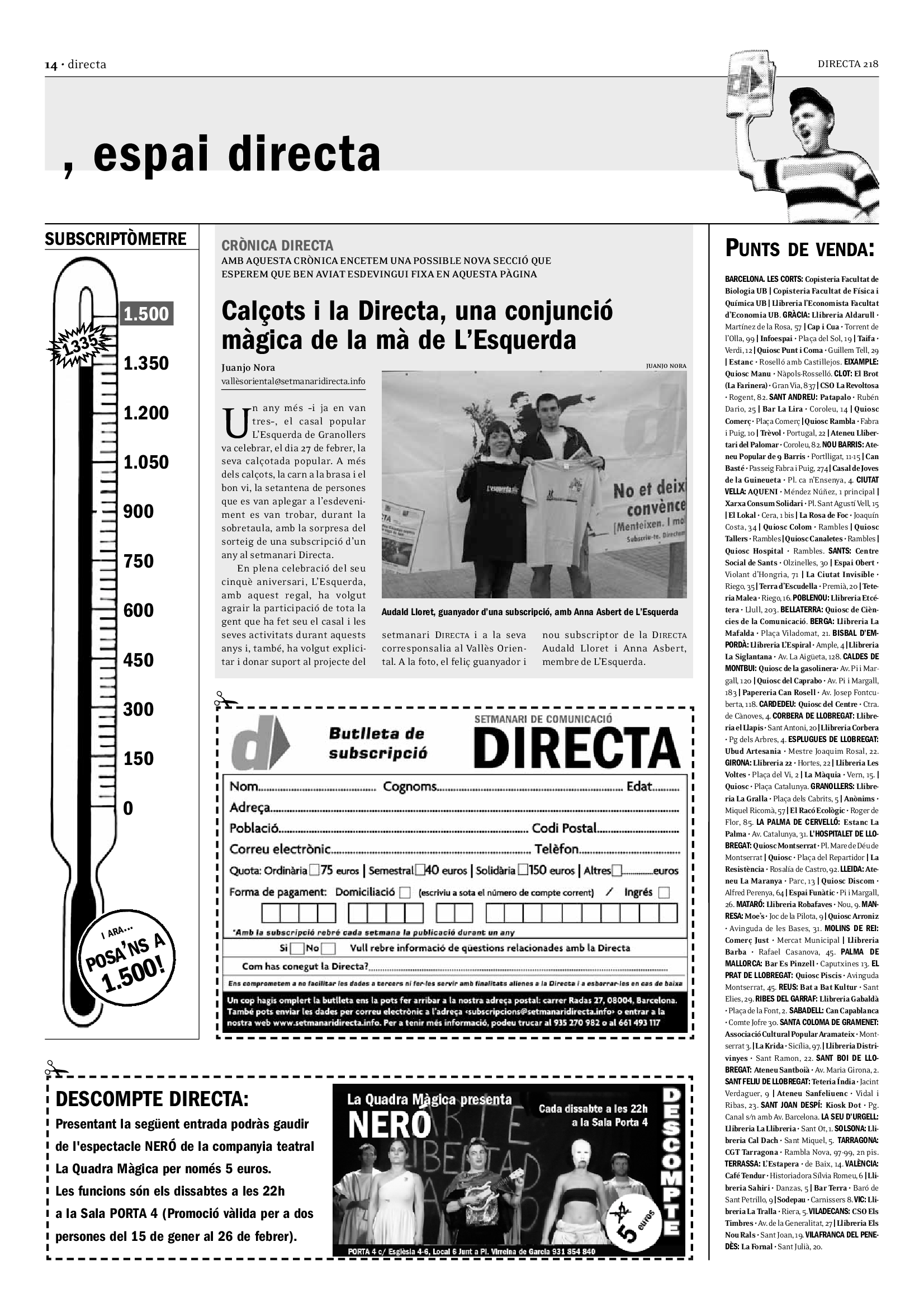 'Directa 218' Pantalla completa Descarregar 1 2-3 4-5 6-7 8-9 10-11 12-13 14-15 16-17 18-19 20-21 22-23 24-25 26-27 28-29 30-31 Donacions Fes una donació 5€ 10€ 20€ 50€ + FES UN DONATIU