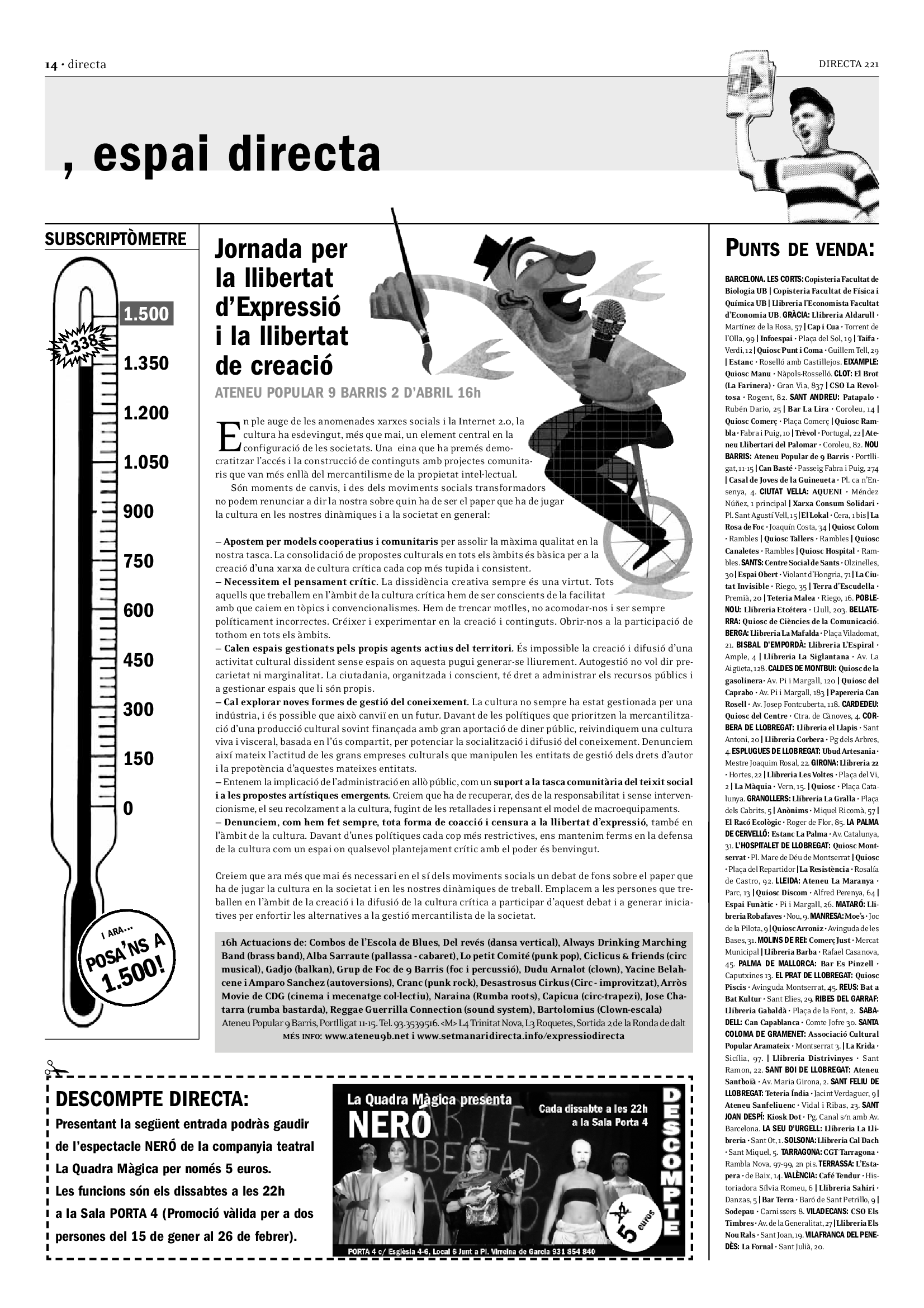 'Directa 221' Pantalla completa Descarregar 1 2-3 4-5 6-7 8-9 10-11 12-13 14-15 16-17 18-19 20-21 22-23 24-25 26-27 28-29 30-31 Donacions Fes una donació 5€ 10€ 20€ 50€ + FES UN DONATIU