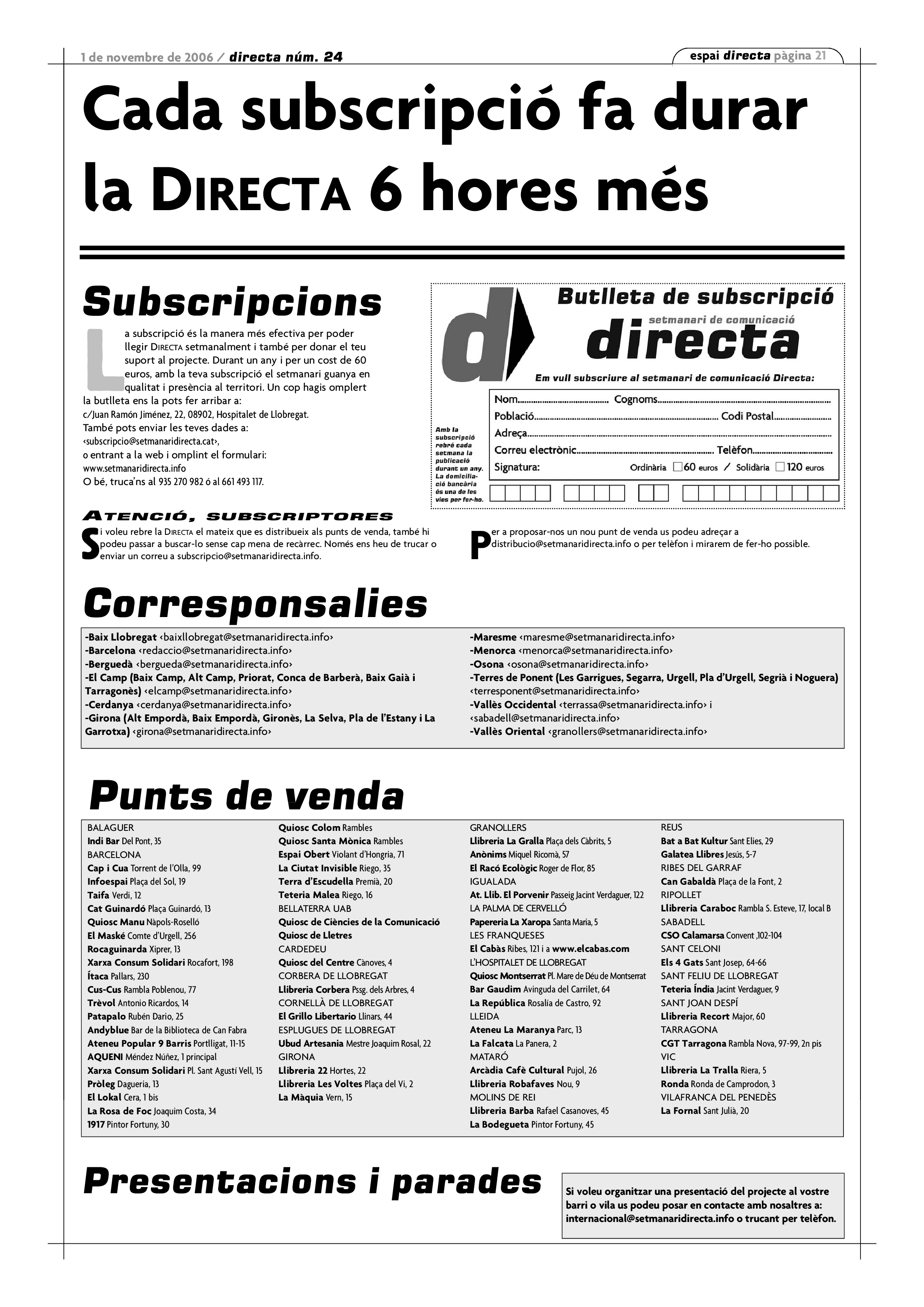 'Directa 24' Pantalla completa Descarregar 1 2-3 4-5 6-7 8-9 10-11 12-13 14-15 16-17 18-19 20-21 22-23 24-25 26-27 Donacions Fes una donació 5€ 10€ 20€ 50€ + FES UN DONATIU
