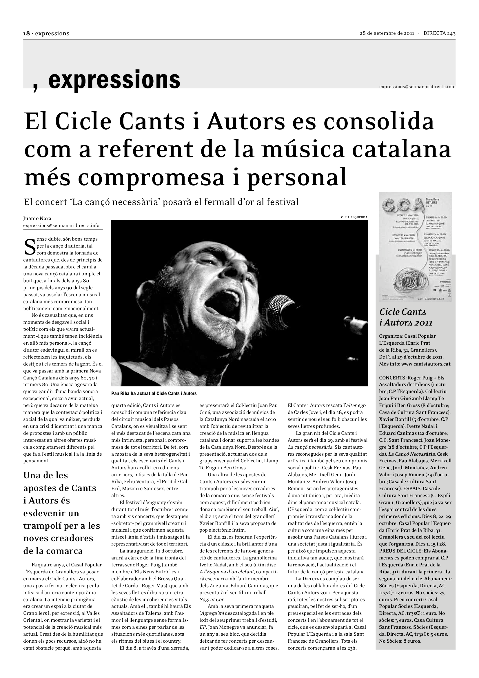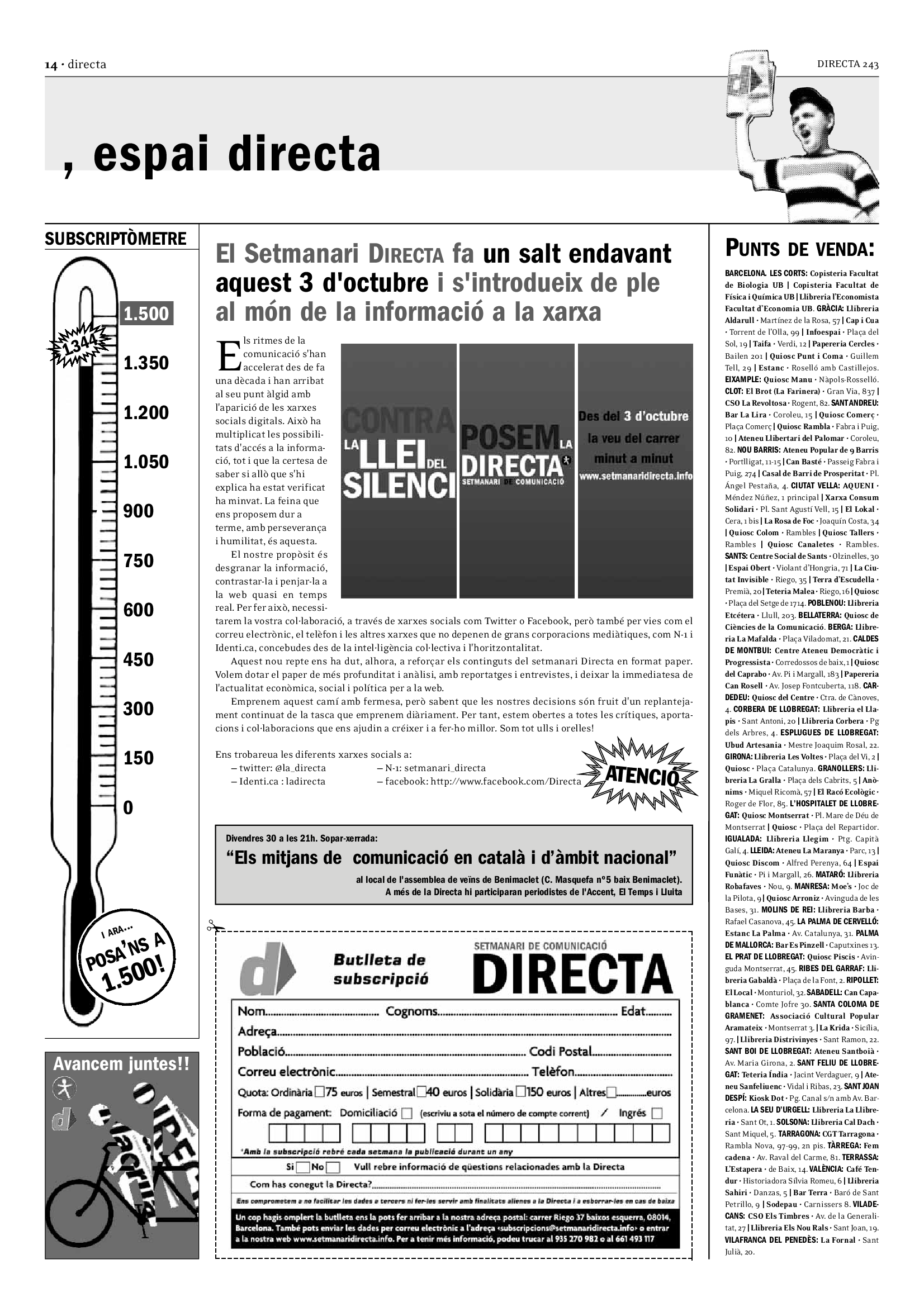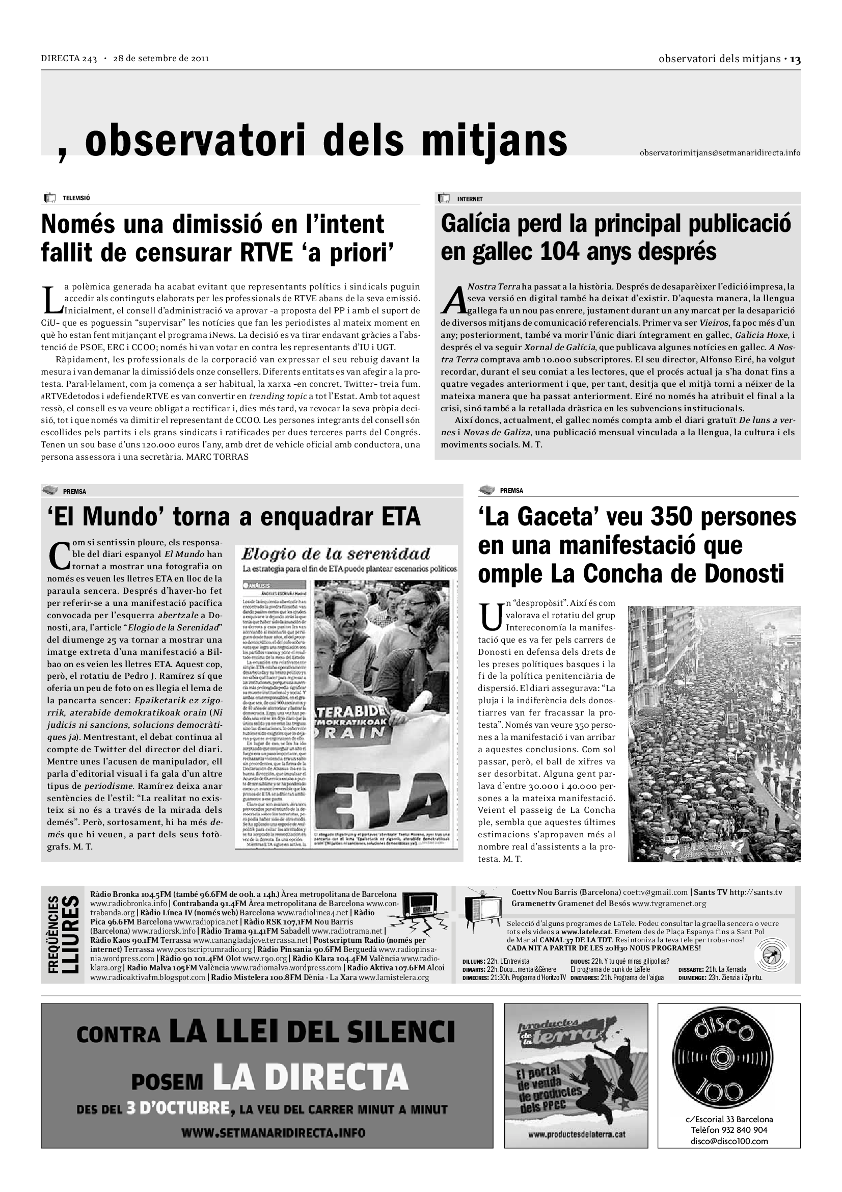 'Directa 243' Pantalla completa Descarregar 1 2-3 4-5 6-7 8-9 10-11 12-13 14-15 16-17 18-19 20-21 22-23 24-25 26-27 28-29 30-31 Donacions Fes una donació 5€ 10€ 20€ 50€ + FES UN DONATIU