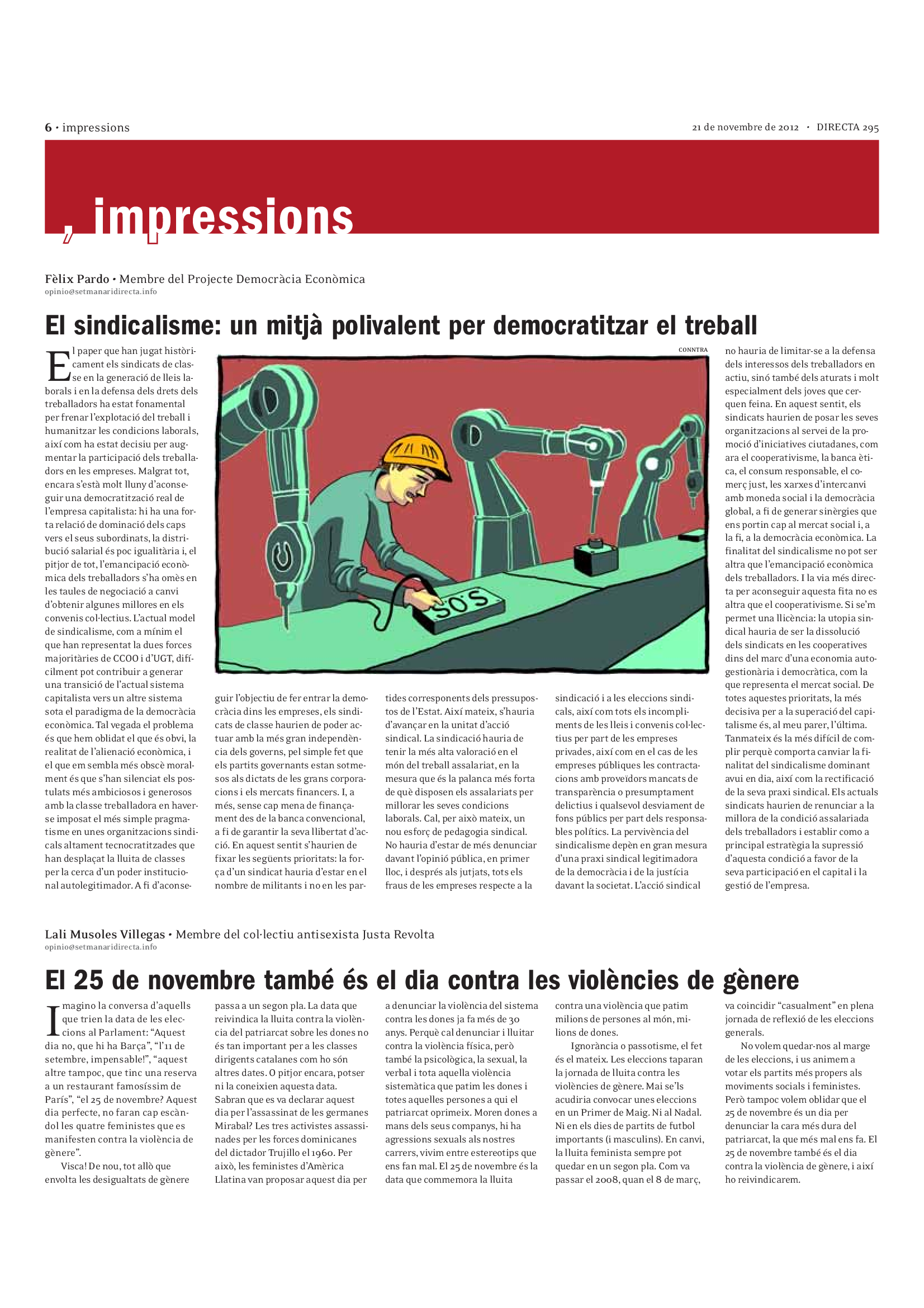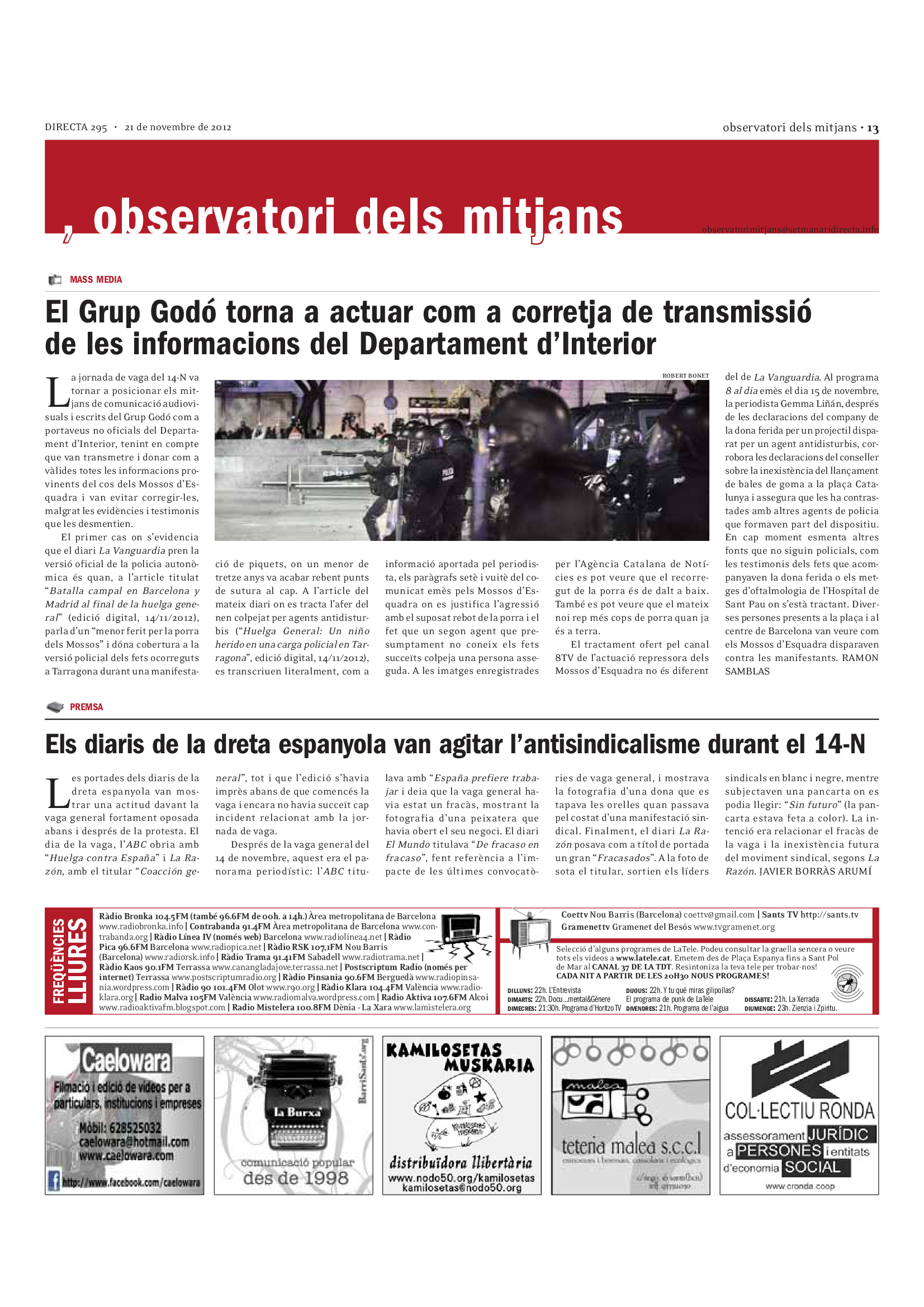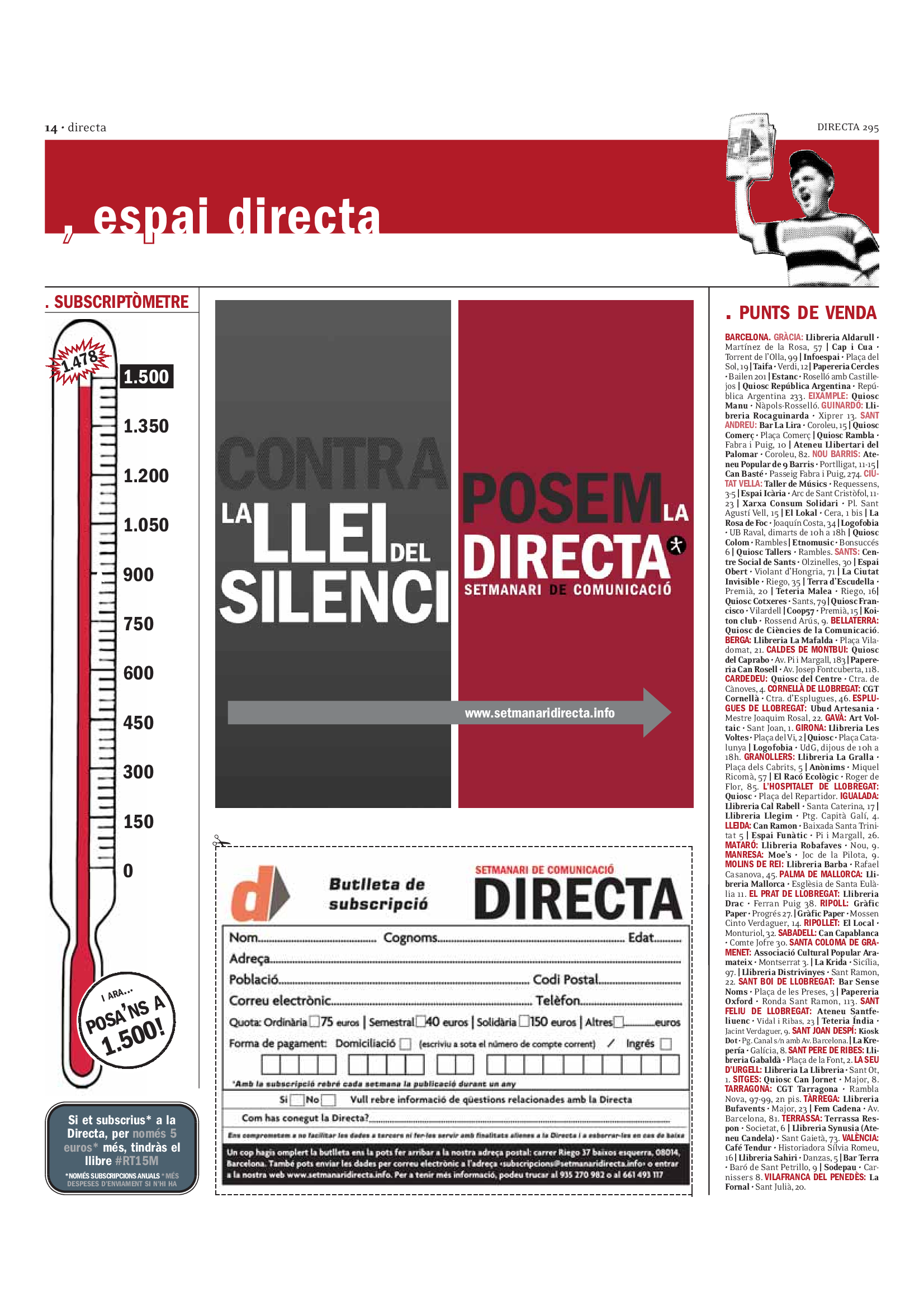 'Directa 295' Pantalla completa Descarregar 1 2-3 4-5 6-7 8-9 10-11 12-13 14-15 16-17 18-19 20-21 22-23 24-25 26-27 28-29 30-31 Donacions Fes una donació 5€ 10€ 20€ 50€ + FES UN DONATIU
