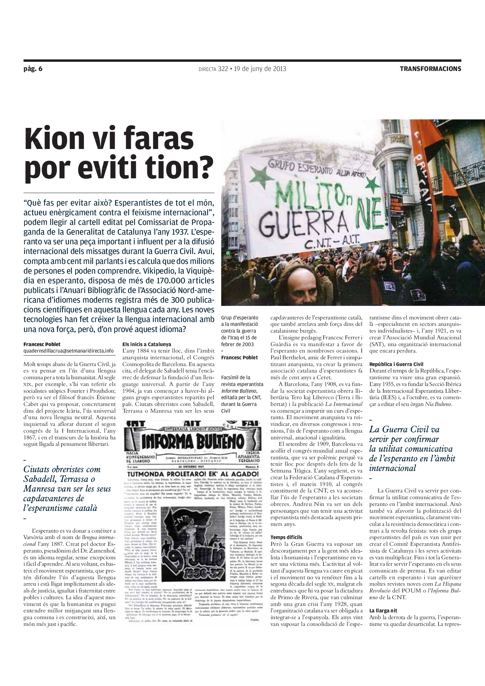 'Directa 322' Pantalla completa Descarregar 1 2-3 4-5 6-7 8-9 10-11 12-13 14-15 16-17 18-19 20-21 22-23 24-25 26-27 28-29 30-31 Donacions Fes una donació 5€ 10€ 20€ 50€ + FES UN DONATIU