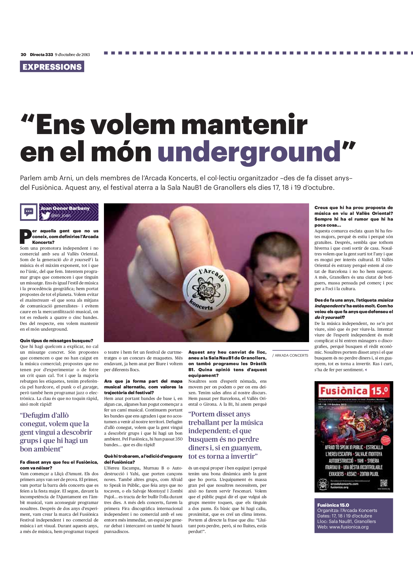 'Directa 333' Pantalla completa Descarregar 1 2-3 4-5 6-7 8-9 10-11 12-13 14-15 16-17 18-19 20-21 22-23 24-25 26-27 28-29 30-31 Donacions Fes una donació 5€ 10€ 20€ 50€ + FES UN DONATIU