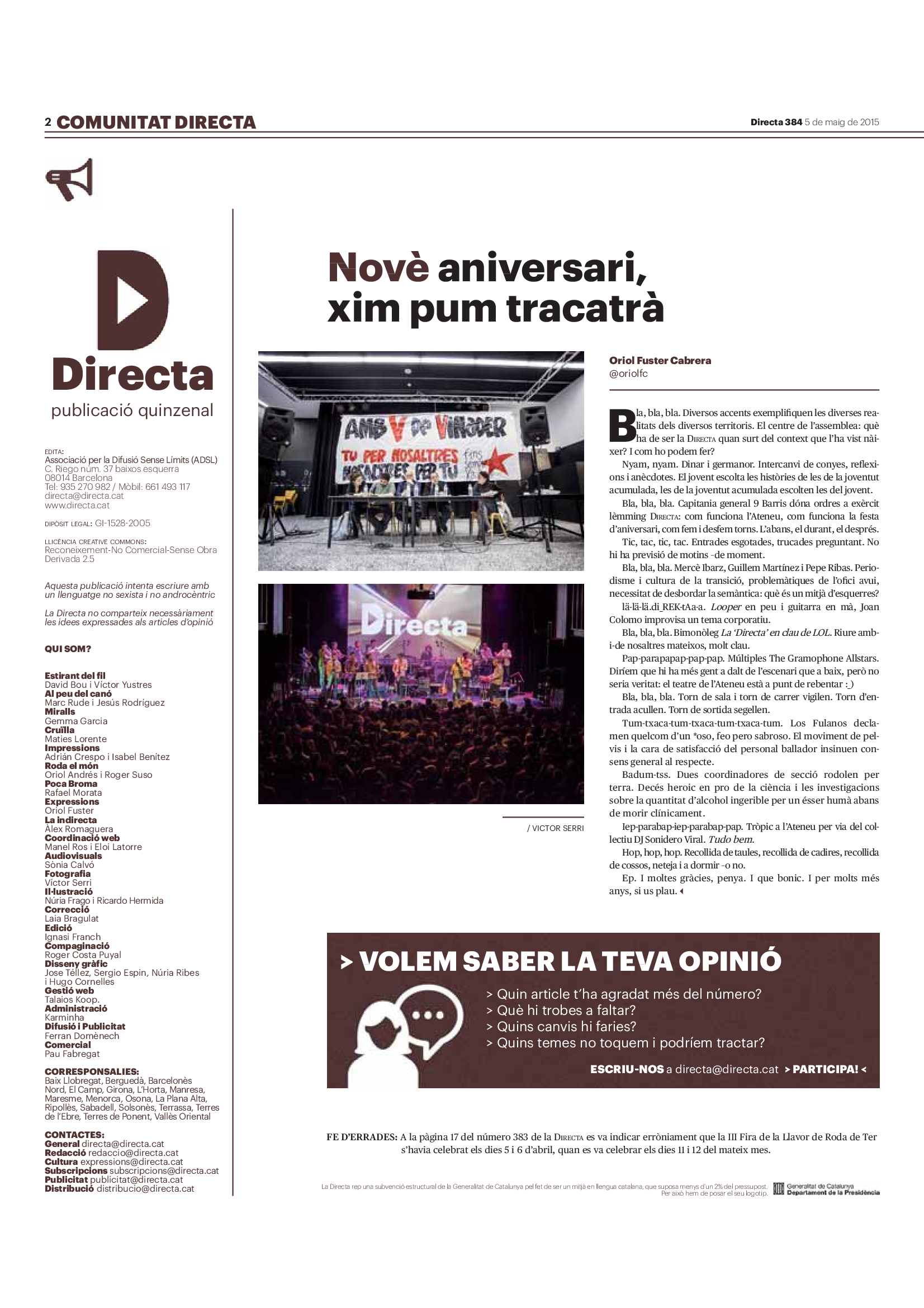 'Directa 384' Pantalla completa Descarregar 1 2-3 4-5 6-7 8-9 10-11 12-13 14-15 16-17 18-19 20-21 22-23 24-25 26-27 28-29 30-31 Donacions Fes una donació 5€ 10€ 20€ 50€ + FES UN DONATIU