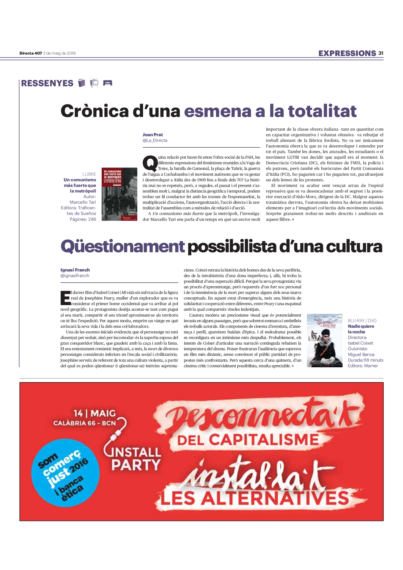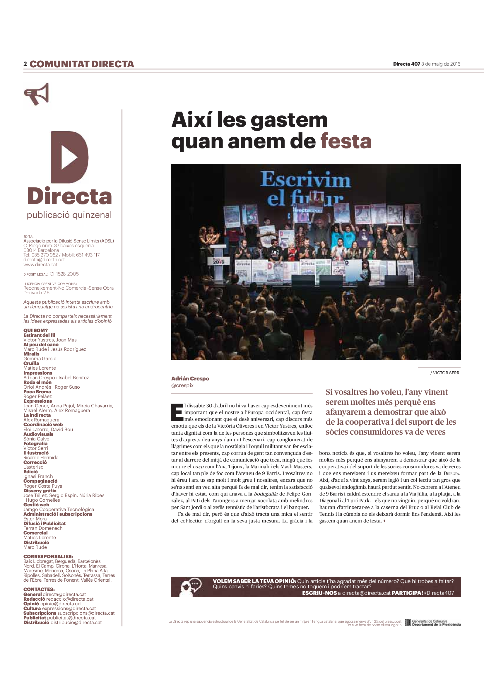 'Directa 407' Pantalla completa Descarregar 1 2-3 4-5 6-7 8-9 10-11 12-13 14-15 16-17 18-19 20-21 22-23 24-25 26-27 28-29 30-31 Donacions Fes una donació 5€ 10€ 20€ 50€ + FES UN DONATIU