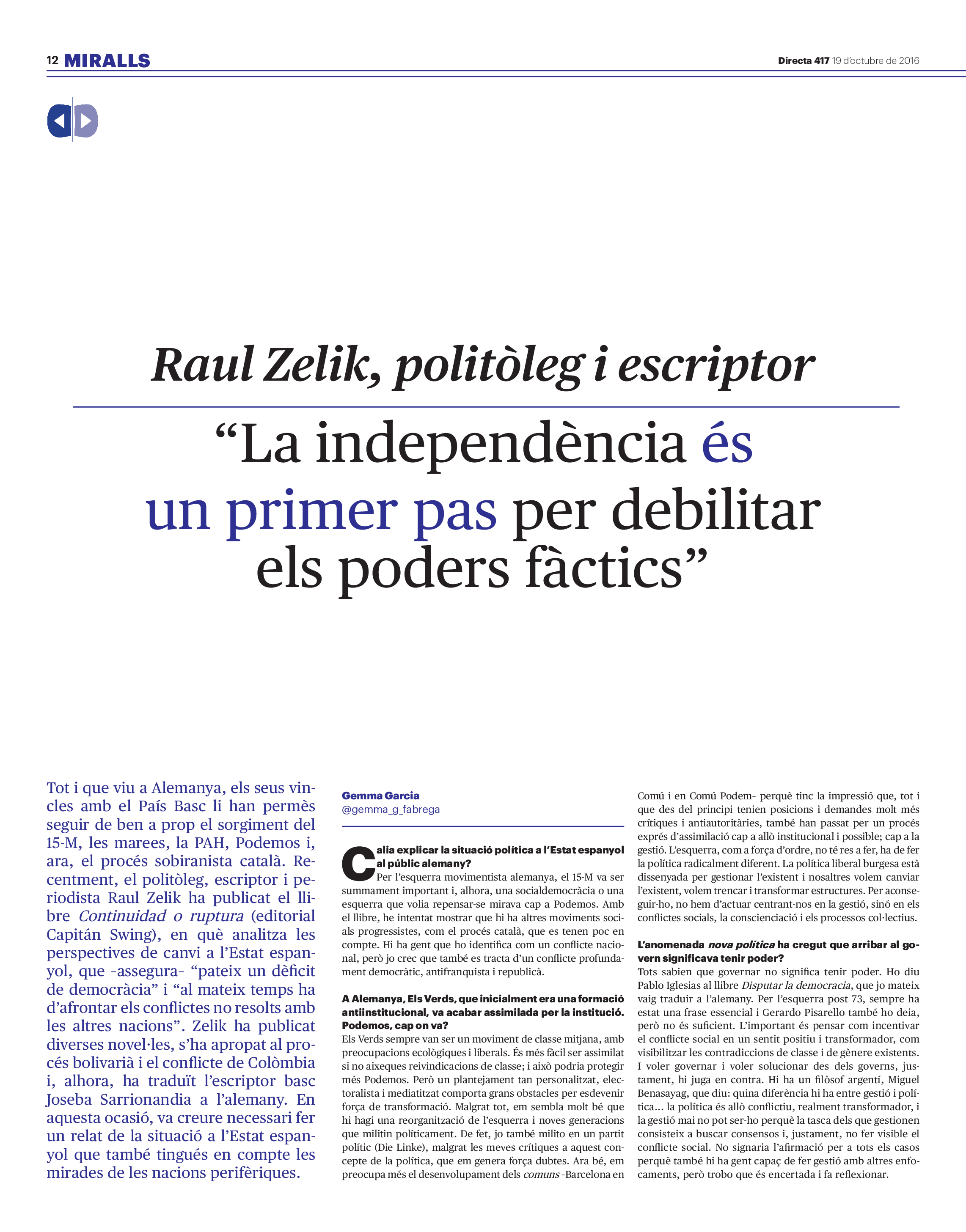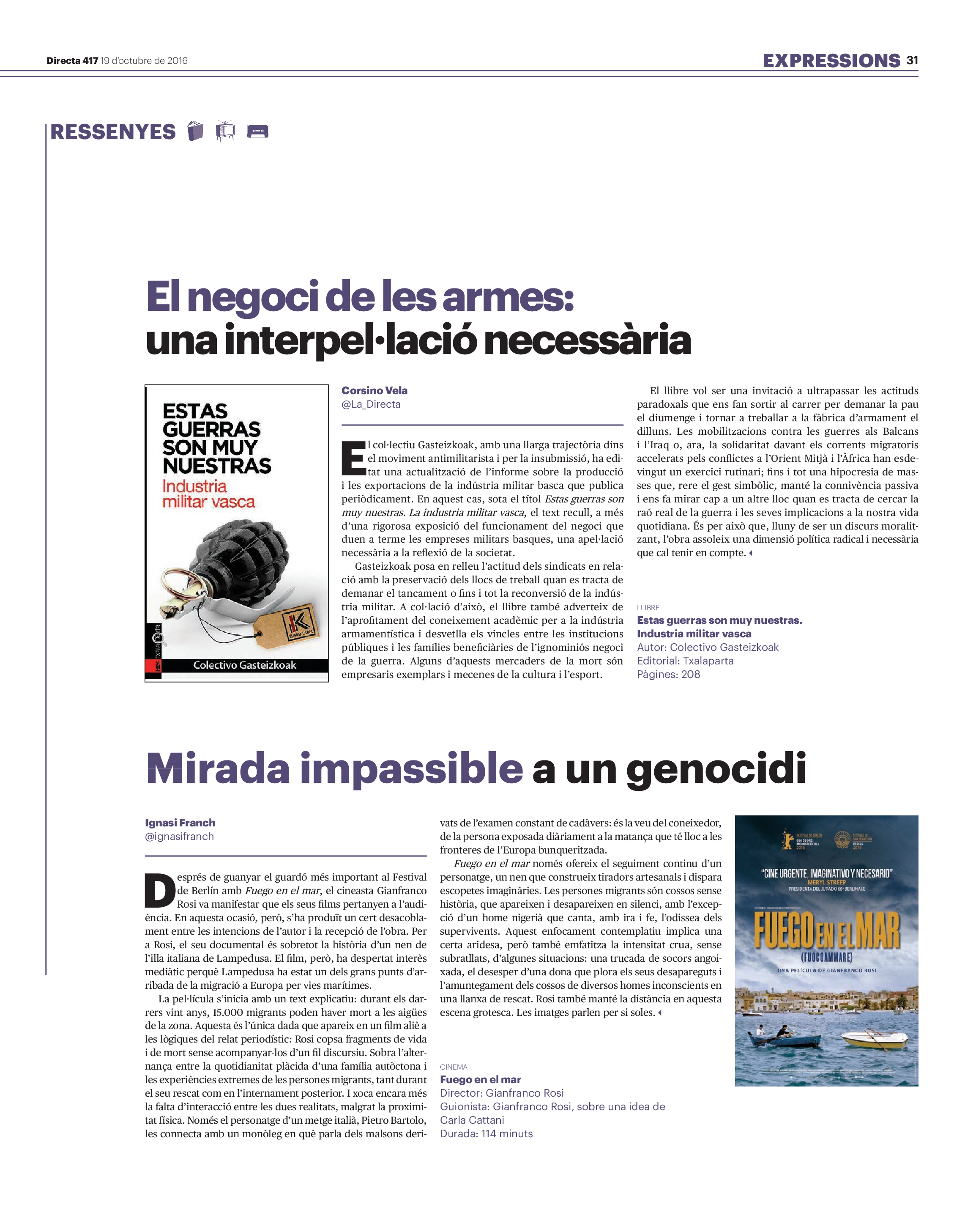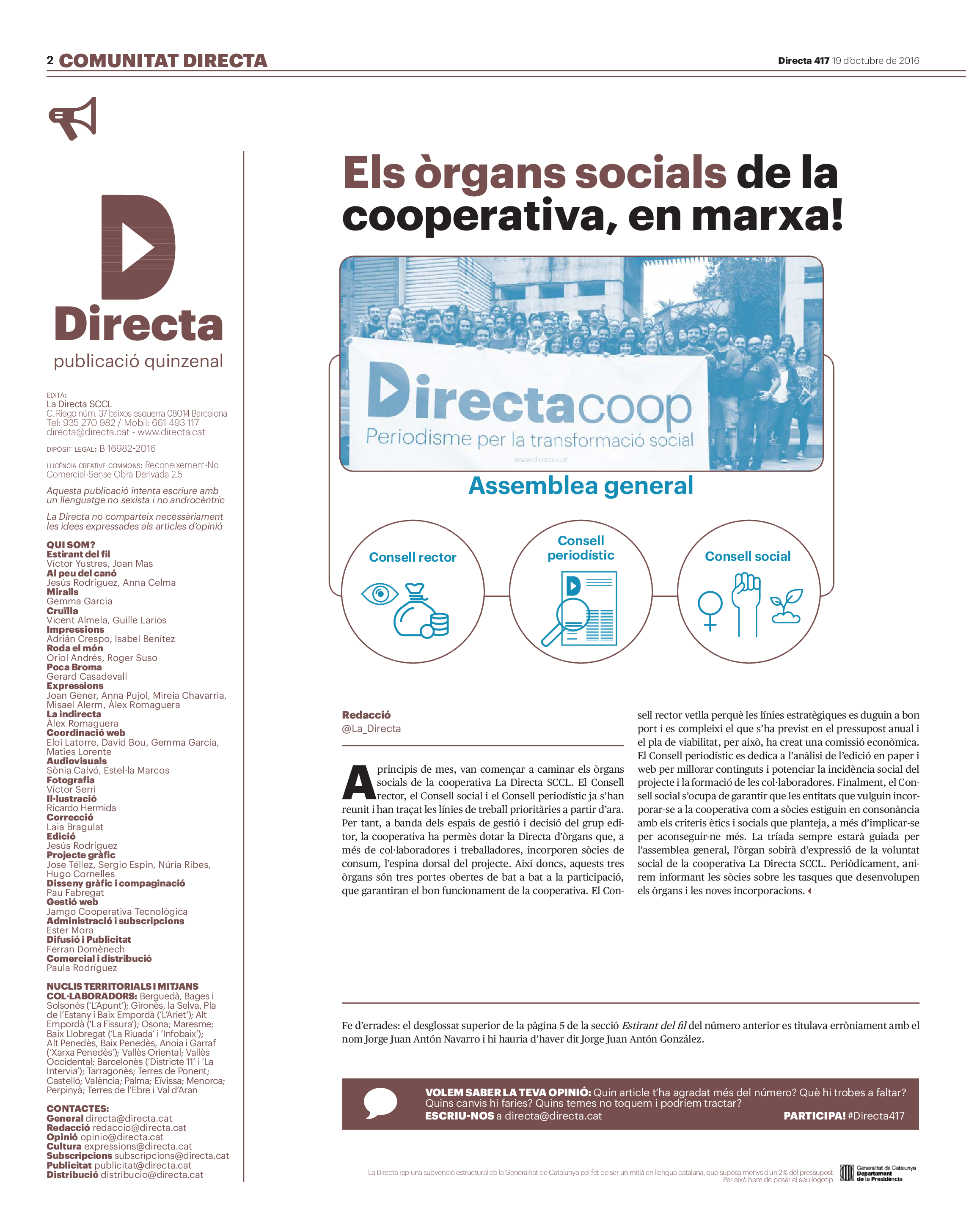 'Directa 417' Pantalla completa Descarregar 1 2-3 4-5 6-7 8-9 10-11 12-13 14-15 16-17 18-19 20-21 22-23 24-25 26-27 28-29 30-31 Donacions Fes una donació 5€ 10€ 20€ 50€ + FES UN DONATIU