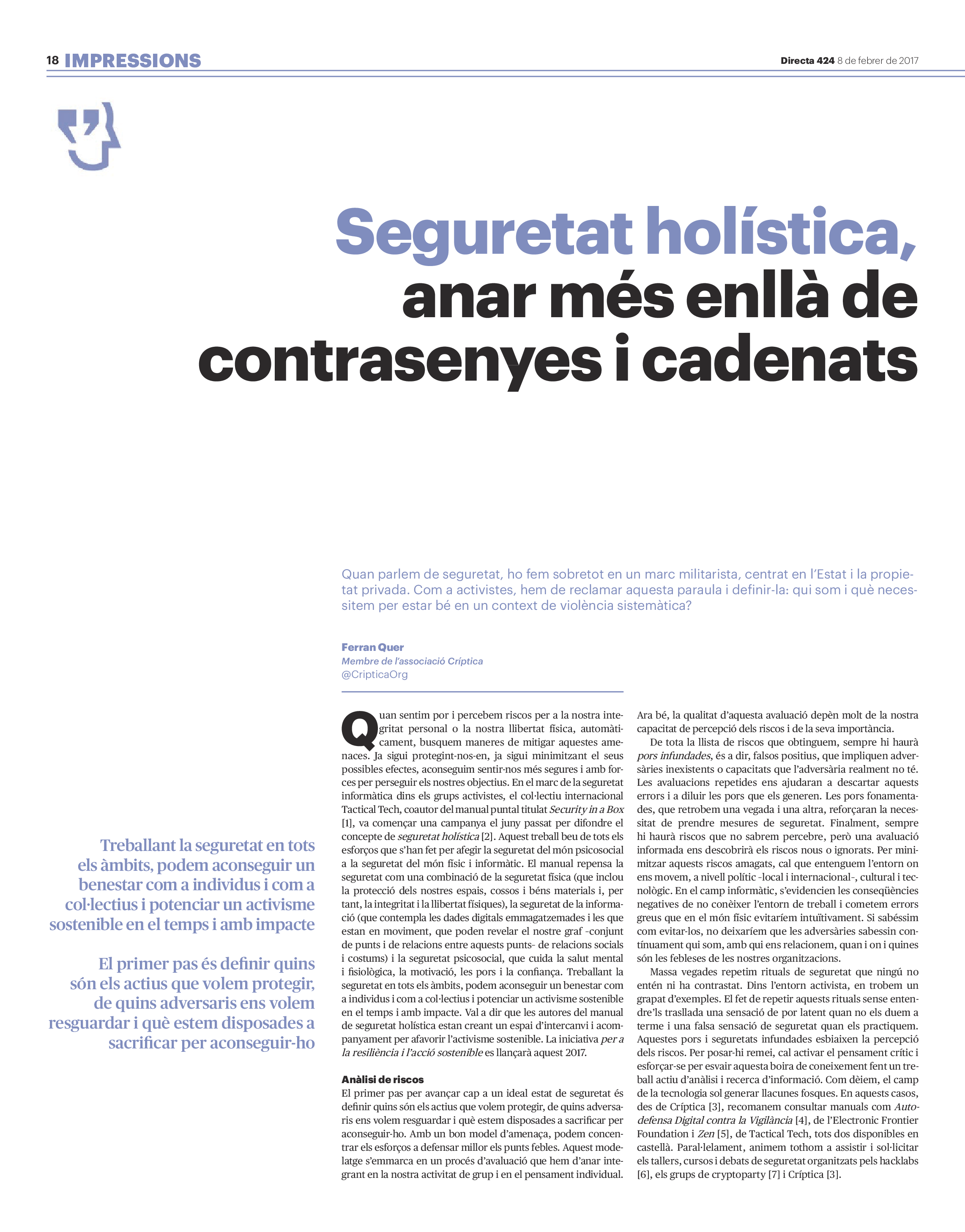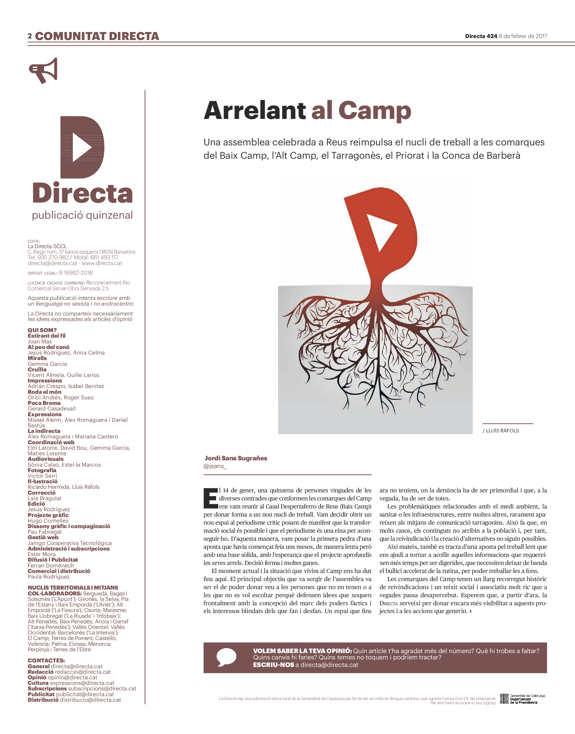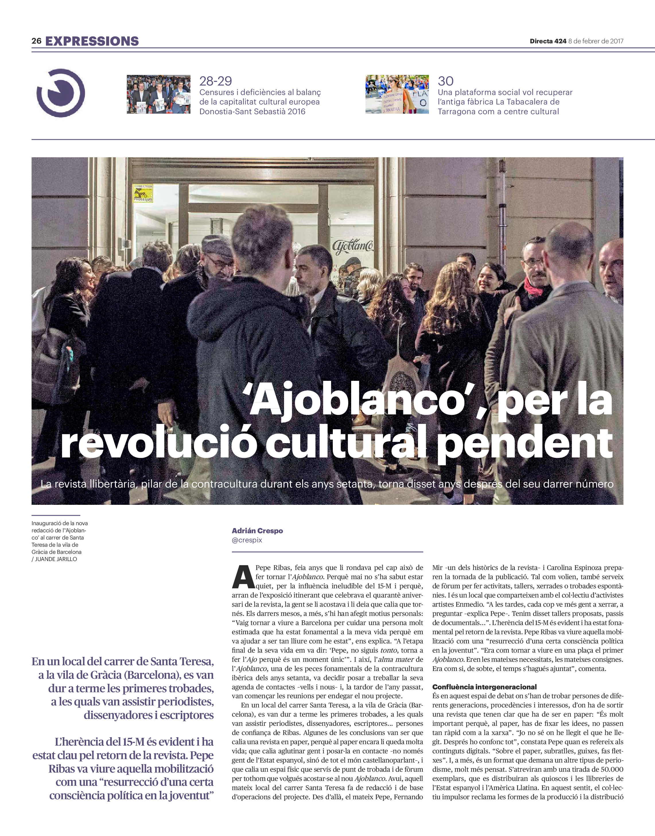 'Directa 424' Pantalla completa Descarregar 1 2-3 4-5 6-7 8-9 10-11 12-13 14-15 16-17 18-19 20-21 22-23 24-25 26-27 28-29 30-31 Donacions Fes una donació 5€ 10€ 20€ 50€ + FES UN DONATIU