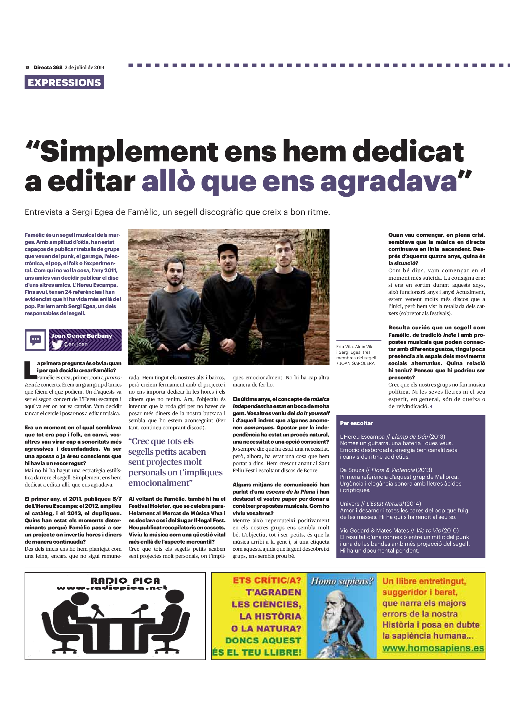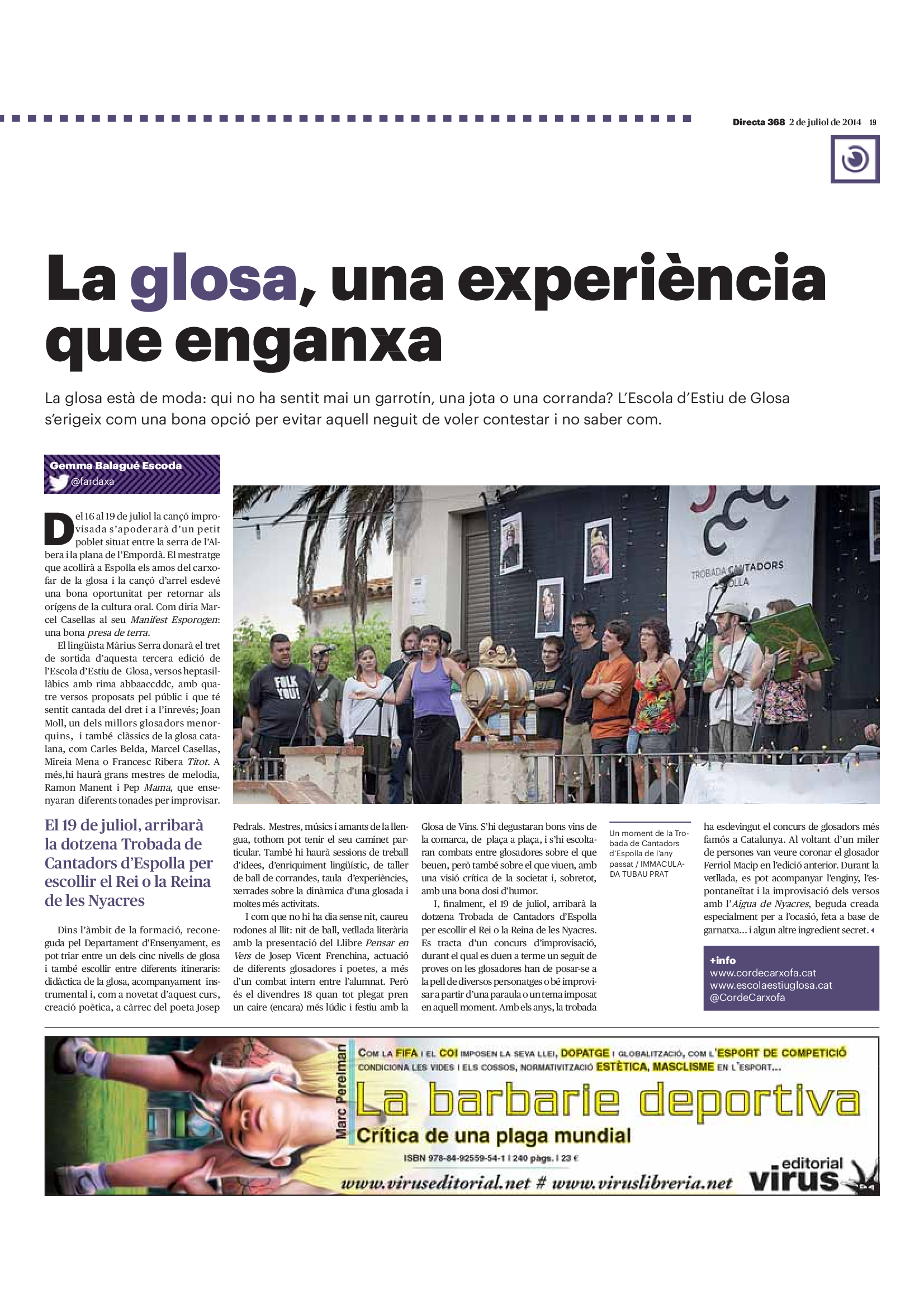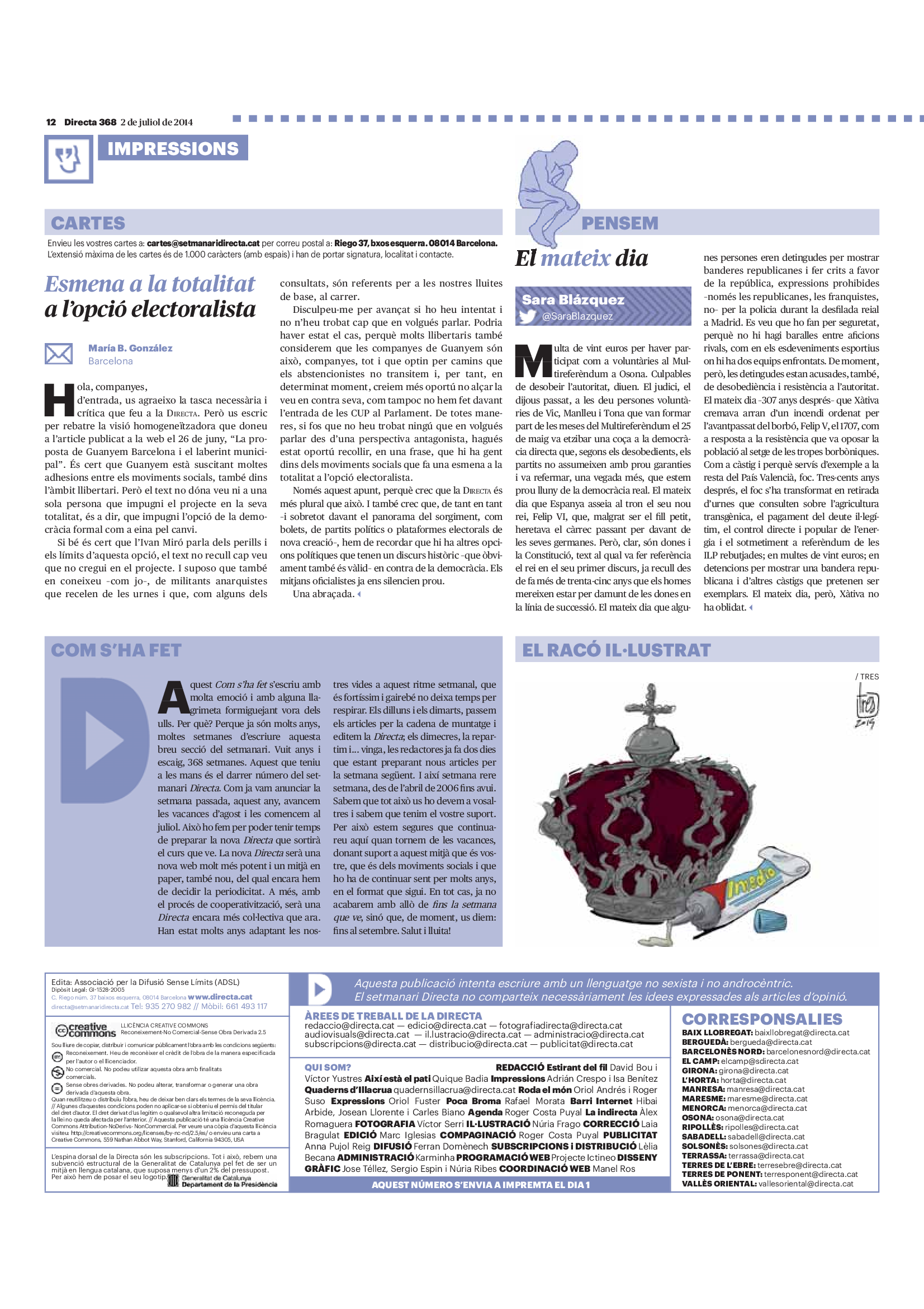'Directa 368' Pantalla completa Descarregar 1 2-3 4-5 6-7 8-9 10-11 12-13 14-15 16-17 18-19 20-21 22-23 24-25 26-27 28-29 30-31 Donacions Fes una donació 5€ 10€ 20€ 50€ + FES UN DONATIU