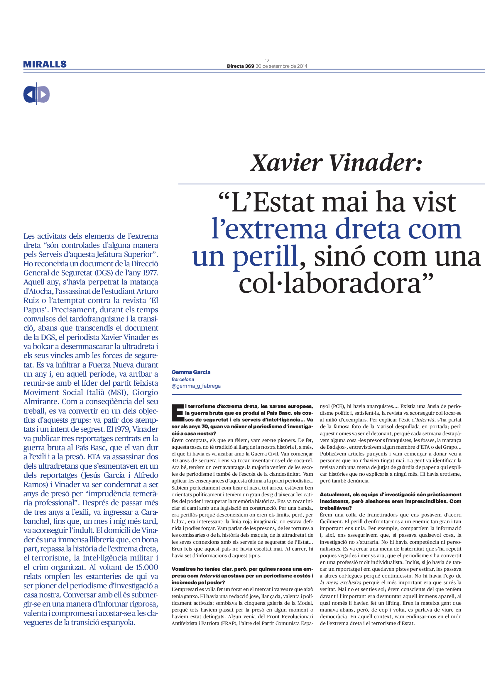 'Directa 369' Pantalla completa Descarregar 1 2-3 4-5 6-7 8-9 10-11 12-13 14-15 16-17 18-19 20-21 22-23 24-25 26-27 28-29 30-31 Donacions Fes una donació 5€ 10€ 20€ 50€ + FES UN DONATIU