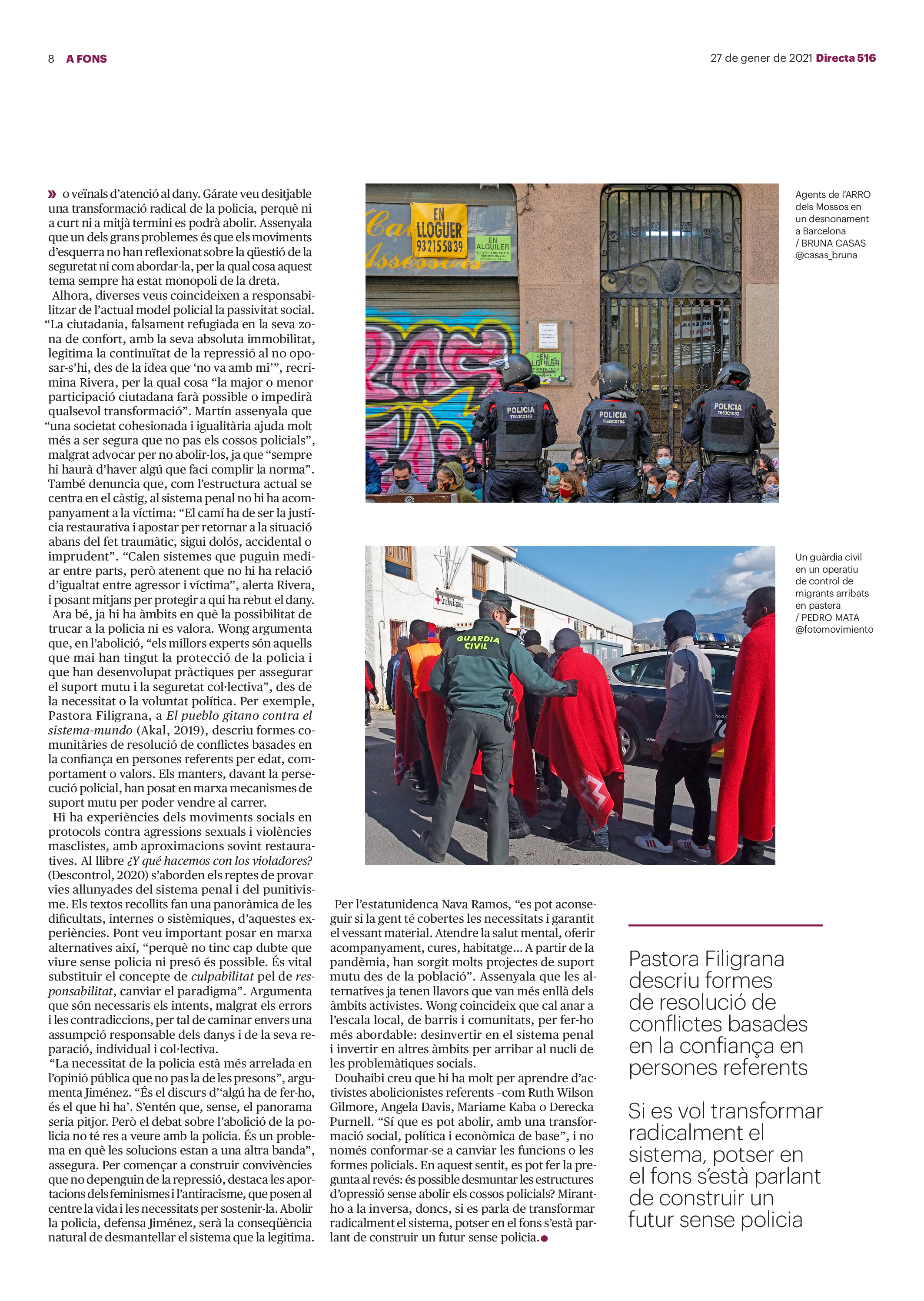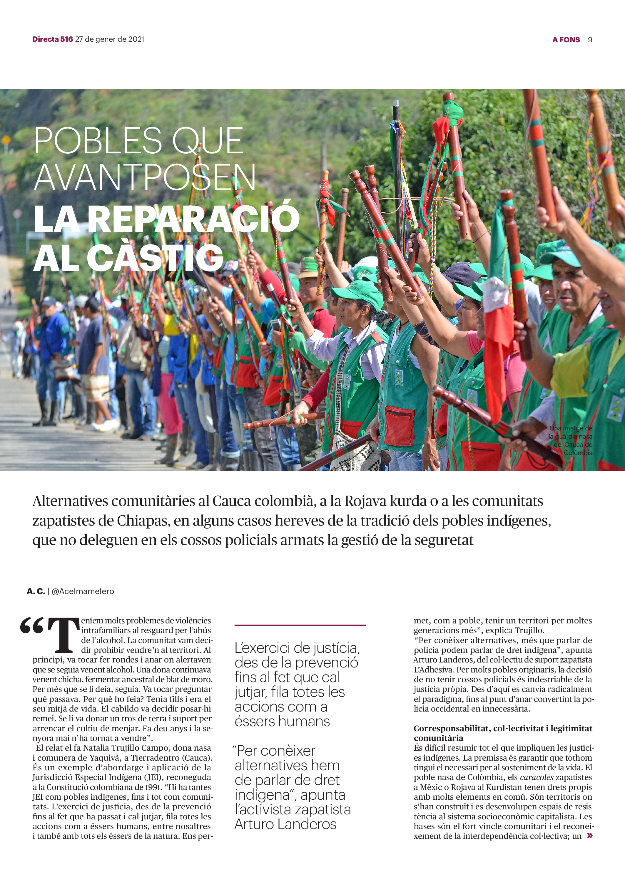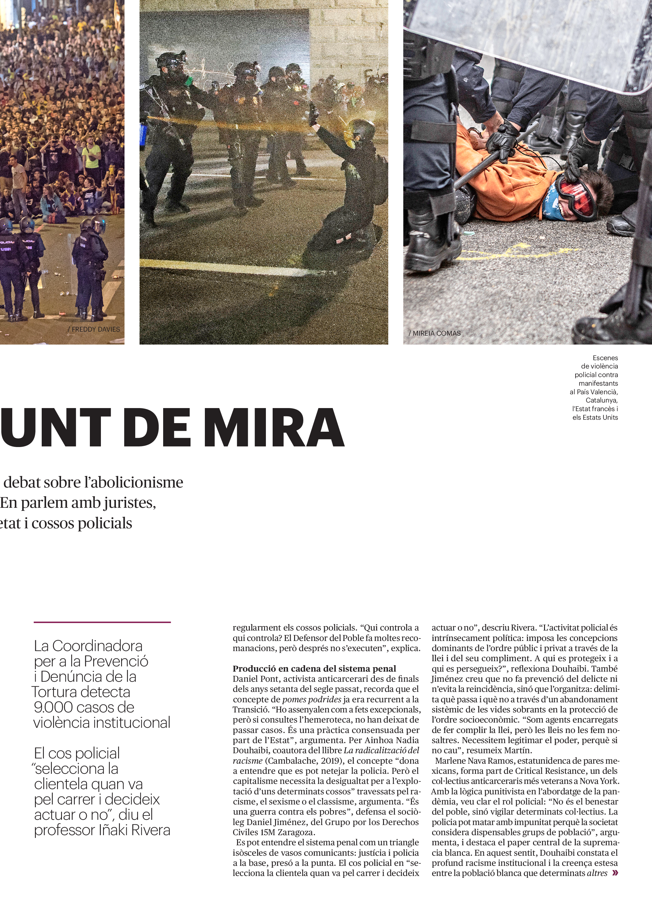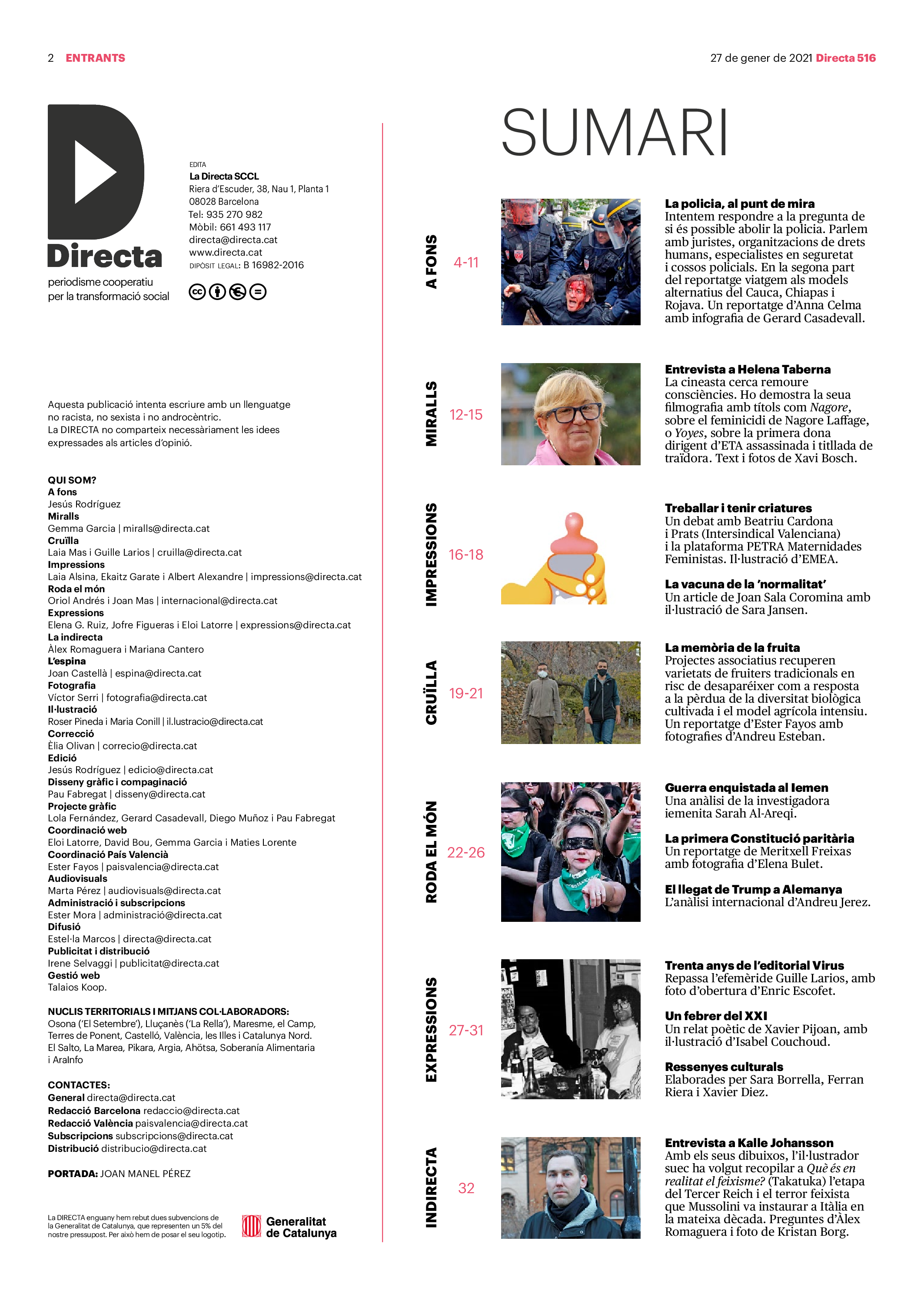 'Directa 516' Pantalla completa Descarregar 1 2-3 4-5 6-7 8-9 10-11 12-13 14-15 16-17 18-19 20-21 22-23 24-25 26-27 28-29 30-31 Consulta el resum del número 516 Què hi trobem, a la 'Directa' 516? A fons A Fons La policia, al punt de mira Anna Celma Imatges | Arxiu A Fons Pobles que avantposen la reparació al càstig Anna Celma Imatges | Arxiu Crüilla Cruïlla La memòria de la fruita Ester Fayos Imatges | Arxiu Expressions Expressions Trenta anys inoculant idees lliures Guille Larios Imatges | Arxiu Expressions Un febrer del XXI Xavier Pijoan Imatges | Isabel Couchoud Bataller Expressions ‘La Veneno’ descansa, però Cristina viu Sara Borrella Expressions El trobador incombustible Ferran Riera Expressions Els orígens supremacistes del feixisme Xavier Díez Miralls Miralls "La profunditat del discurs és obligatòria perquè no podem enfosquir més el món" Xavi Bosch Imatges | Xavi Bosch Roda el mon Roda el món Un conflicte lluny del blanc i el negre Sarah Al-Areqi Imatges | Arxiu Roda el món Xile escriurà la primera Constitució paritària del món Meritxell Freixas Imatges | Elena Bulet Roda el món El virus trumpista ja és a Alemanya Andreu Jerez Imatges | Arxiu Indirecta Indirecta “El nou feixisme s’aprofita de la democràcia per liquidar-la” Àlex Romaguera Imatges | Arxiu Impressions Impressions El llarg camí per la igualtat laboral Beatriu Cardona i Prats Imatges | EMEA Impressions La vacuna de la 'normalitat' Joan Sala Coromina Imatges | Sara Jansen Donacions Fes una donació 5€ 10€ 20€ 50€ + FES UN DONATIU