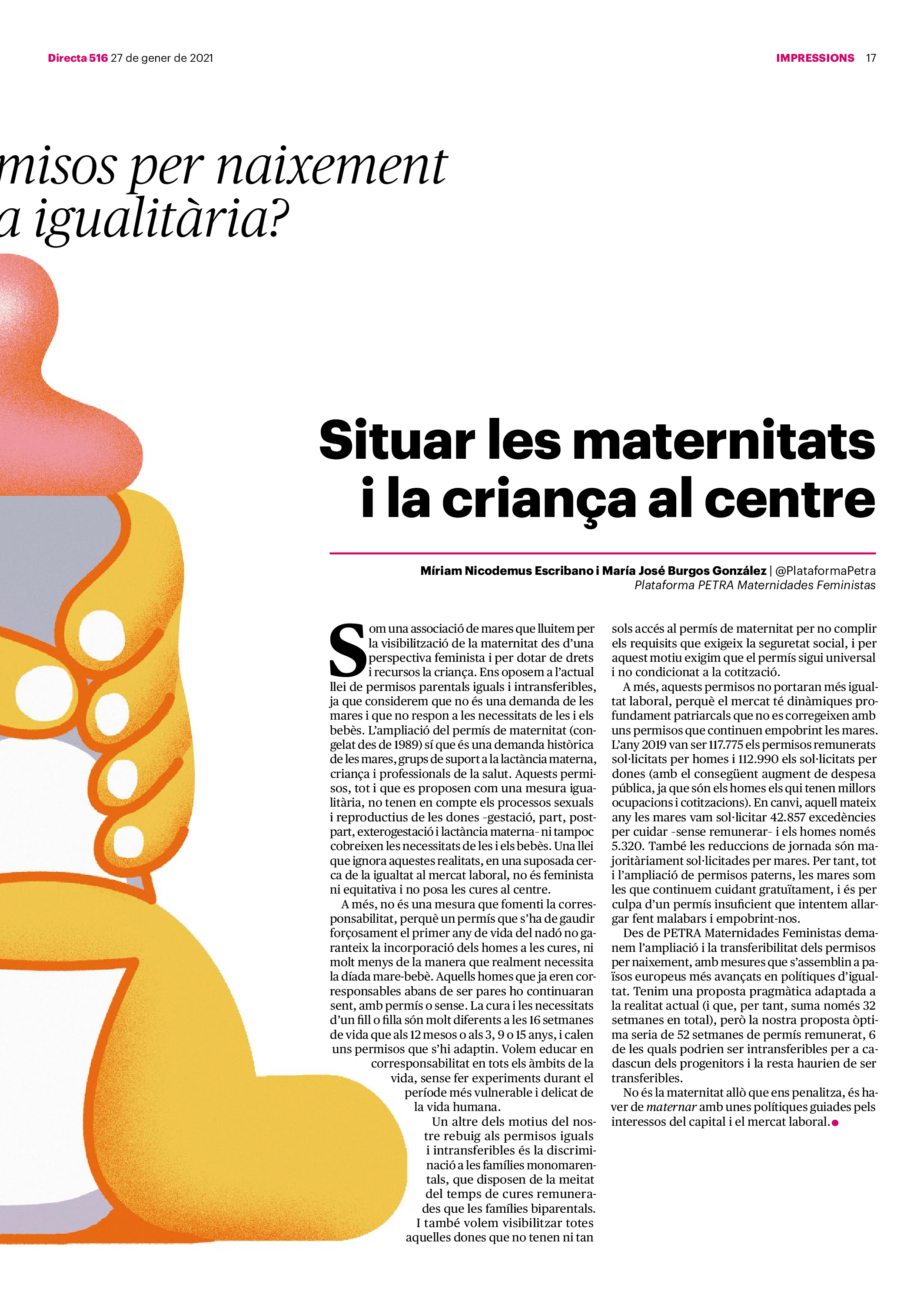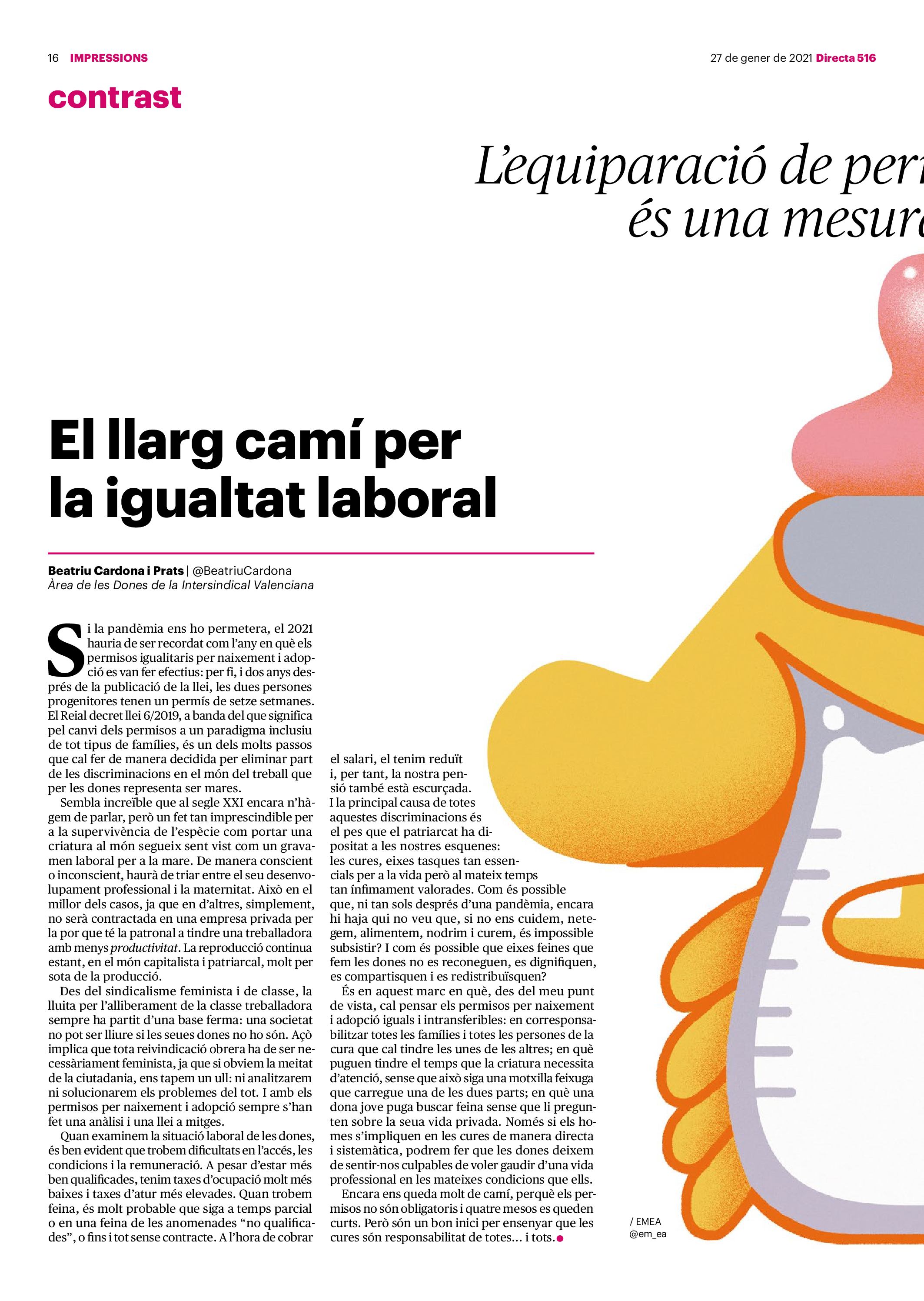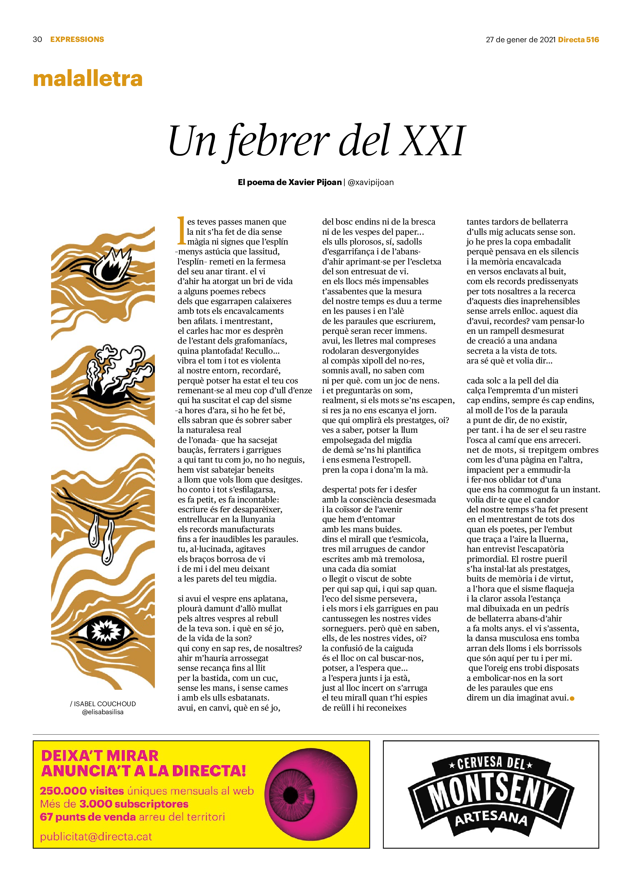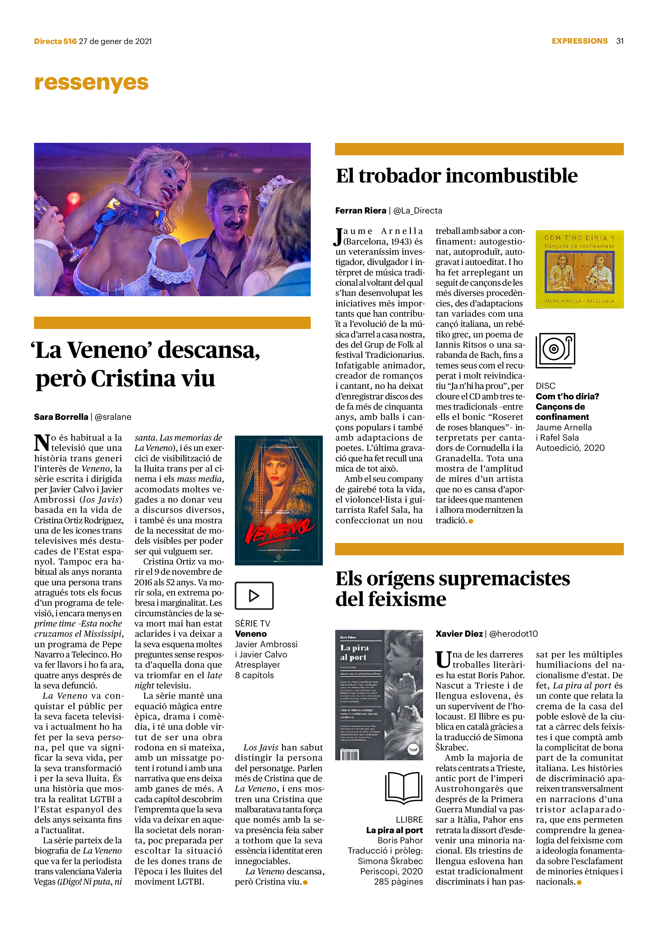 'Directa 516' Pantalla completa Descarregar 1 2-3 4-5 6-7 8-9 10-11 12-13 14-15 16-17 18-19 20-21 22-23 24-25 26-27 28-29 30-31 Consulta el resum del número 516 Què hi trobem, a la 'Directa' 516? A fons A Fons La policia, al punt de mira Anna Celma Imatges | Arxiu A Fons Pobles que avantposen la reparació al càstig Anna Celma Imatges | Arxiu Crüilla Cruïlla La memòria de la fruita Ester Fayos Imatges | Arxiu Expressions Expressions Trenta anys inoculant idees lliures Guille Larios Imatges | Arxiu Expressions Un febrer del XXI Xavier Pijoan Imatges | Isabel Couchoud Bataller Expressions ‘La Veneno’ descansa, però Cristina viu Sara Borrella Expressions El trobador incombustible Ferran Riera Expressions Els orígens supremacistes del feixisme Xavier Díez Miralls Miralls "La profunditat del discurs és obligatòria perquè no podem enfosquir més el món" Xavi Bosch Imatges | Xavi Bosch Roda el mon Roda el món Un conflicte lluny del blanc i el negre Sarah Al-Areqi Imatges | Arxiu Roda el món Xile escriurà la primera Constitució paritària del món Meritxell Freixas Imatges | Elena Bulet Roda el món El virus trumpista ja és a Alemanya Andreu Jerez Imatges | Arxiu Indirecta Indirecta “El nou feixisme s’aprofita de la democràcia per liquidar-la” Àlex Romaguera Imatges | Arxiu Impressions Impressions El llarg camí per la igualtat laboral Beatriu Cardona i Prats Imatges | EMEA Impressions La vacuna de la 'normalitat' Joan Sala Coromina Imatges | Sara Jansen Donacions Fes una donació 5€ 10€ 20€ 50€ + FES UN DONATIU