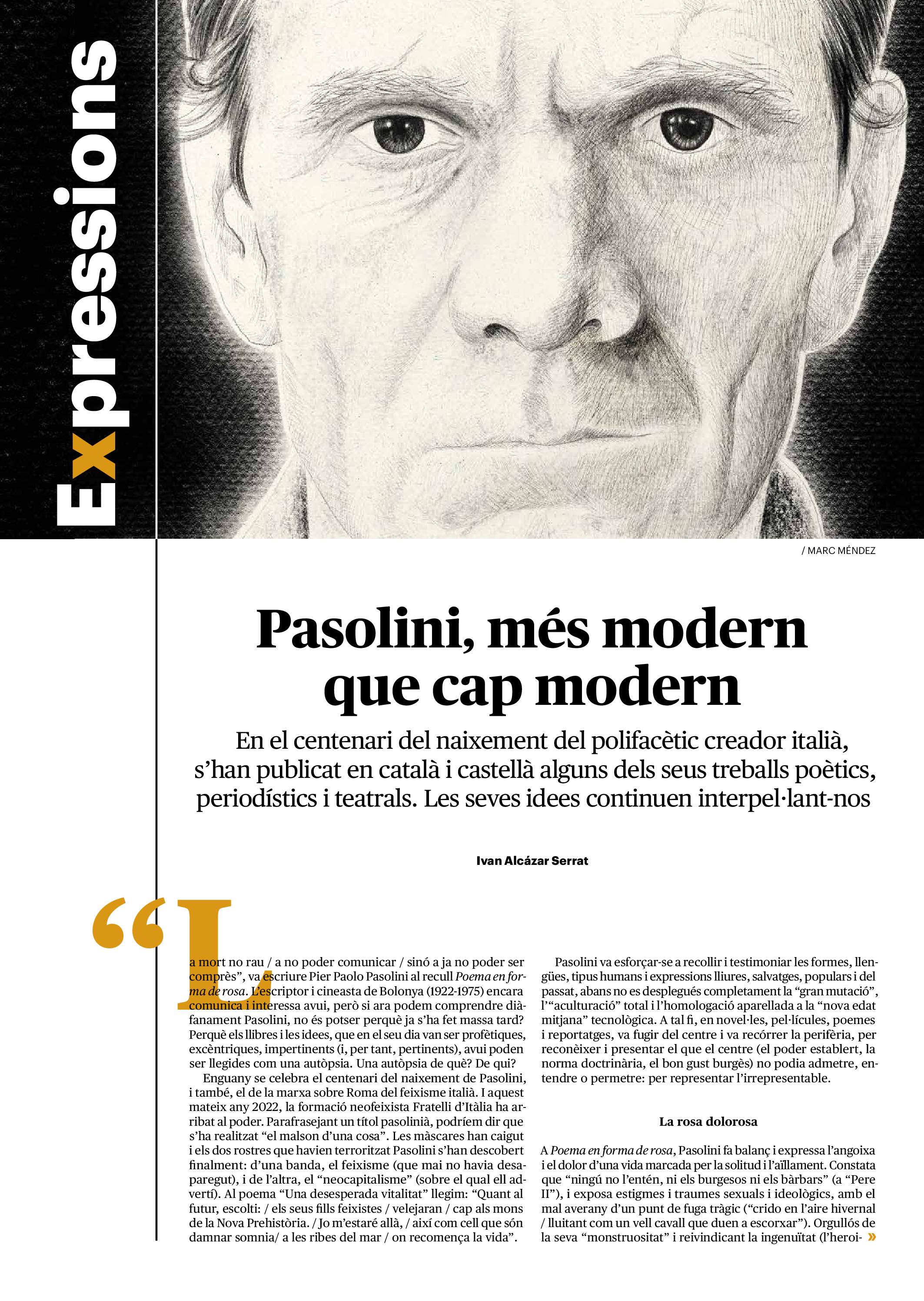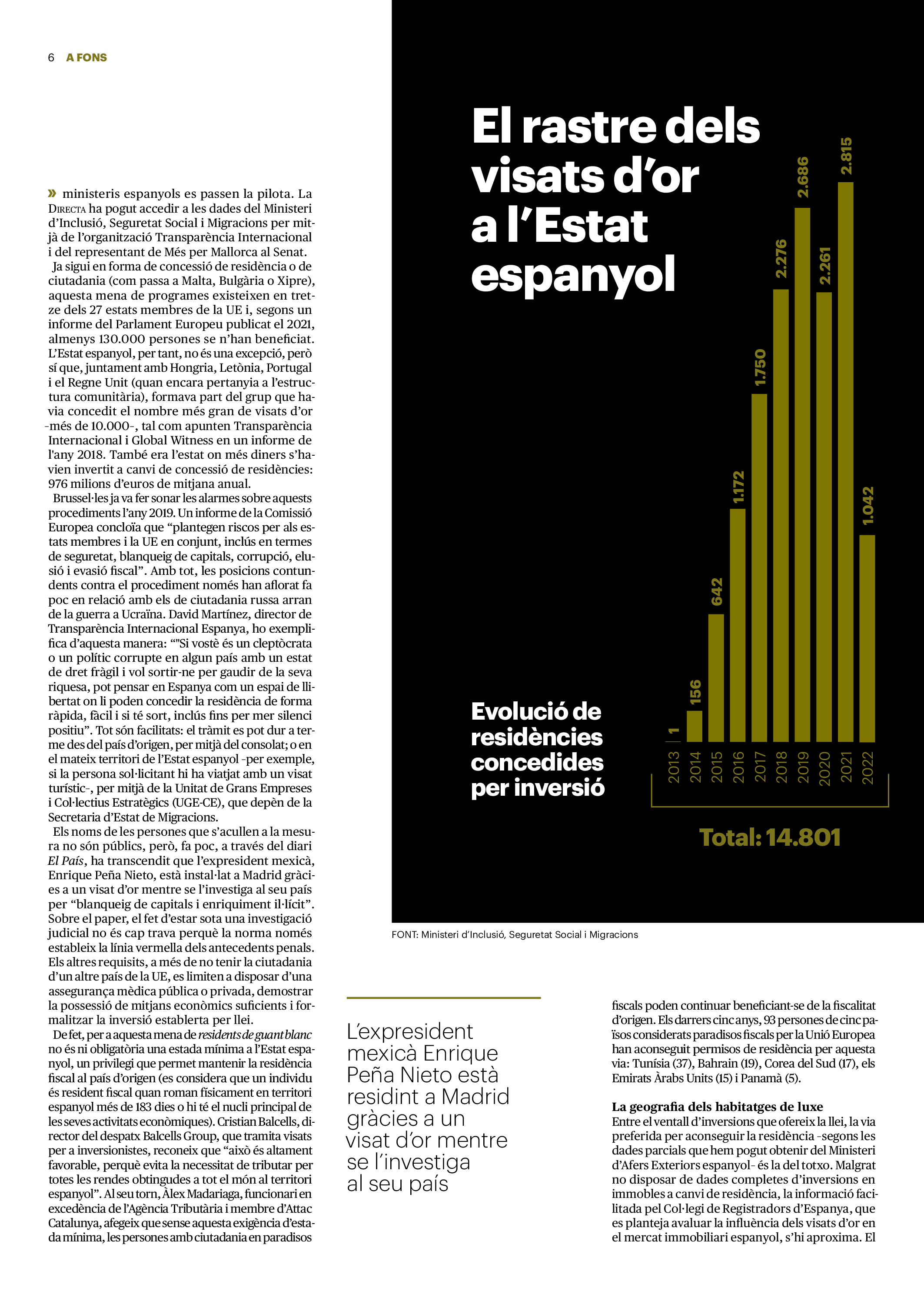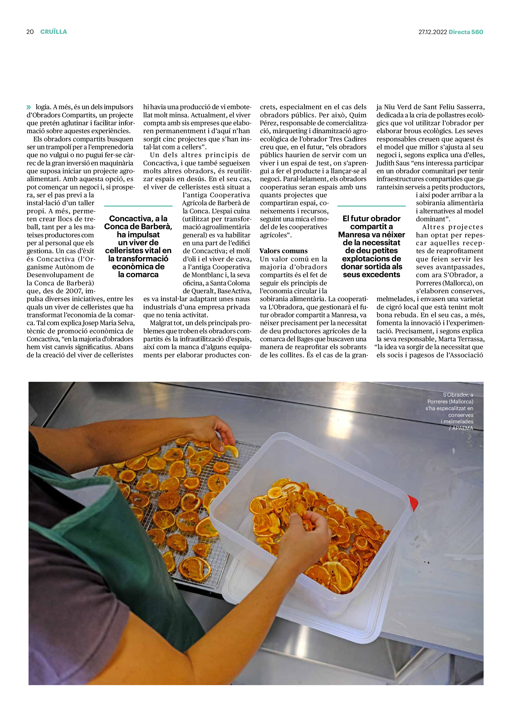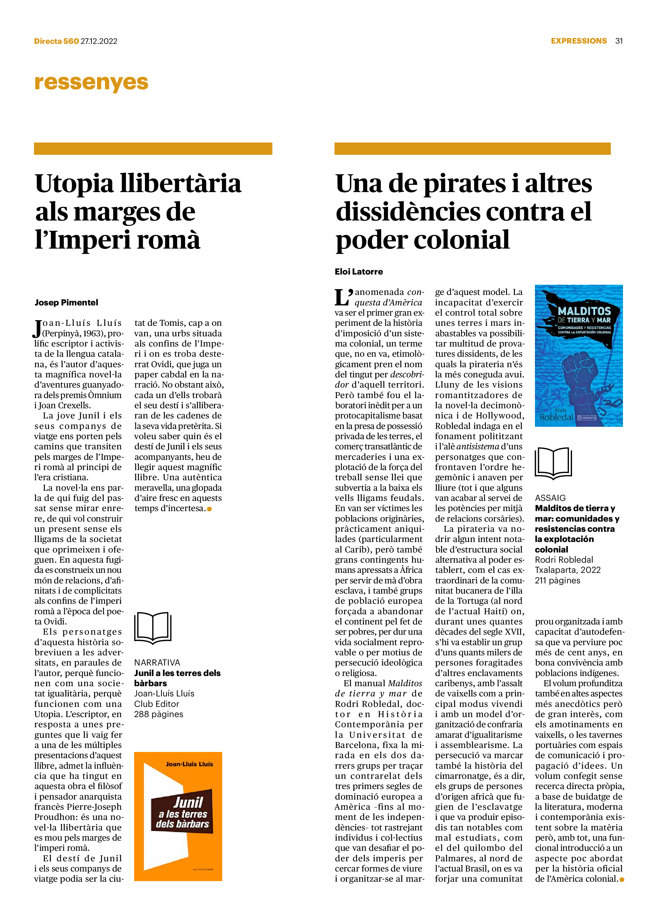 'Directa 560' Pantalla completa Descarregar 1 2-3 4-5 6-7 8-9 10-11 12-13 14-15 16-17 18-19 20-21 22-23 24-25 26-27 28-29 30-31 Consulta el resum del número 560 Què hi trobem, a la ‘Directa’ 560? A fons A Fons Permís de residència exprés per a les grans fortunes Gemma Garcia Imatges | Victor Serri A Fons Portugal, escàndols de corrupció i un fre limitat Marc Iglesias Imatges | Arxiu A Fons Un laberint burocràtic per milers de persones David Bou Imatges | Victor Serri Crüilla Cruïlla Sabors compartits Laura Font Sentís Imatges | Claudia Clavell Expressions Expressions Pasolini, més modern que cap modern Ivan Alcázar Serrat Imatges | Marc Méndez Expressions Si la teva mort fos un vestit Olga Codina Imatges | Tània Manzanal Cerdà Expressions Utopia llibertària als marges de l’Imperi romà Josep Pimentel Expressions Una de pirates i altres dissidències contra el poder colonial Eloi Latorre Miralls Miralls “La falsa idea de ‘progrés’ històric queda per a l’home heterosexual, blanc i ric” Anna Iñigo Imatges | Carlos Baglietto Roda el mon Roda el món La fractura social s’eixampla al Perú José de Echave Cáceres Imatges | Arxiu Roda el món La no-violència, víctima de la guerra a Ucraïna Maties Lorente Imatges | Roman Baluk Roda el món Cimera Al-Assad i Erdogan: no, però sí Michele Giorgio Imatges | Arxiu Indirecta Indirecta “El riu Cauca també necessita veritat i justícia” Berta Camprubí Imatges | Victor Serri Impressions Impressions El cas de Pablo Hasél o la disputa pel control del relat patrimonial Ibán Martínez Cárceles Imatges | Borja Lozano Impressions Lobbies manipuladors amb el control dels transgènics Joserra Olarieta Imatges | SANSAlab Donacions Fes una donació 5€ 10€ 20€ 50€ + FES UN DONATIU