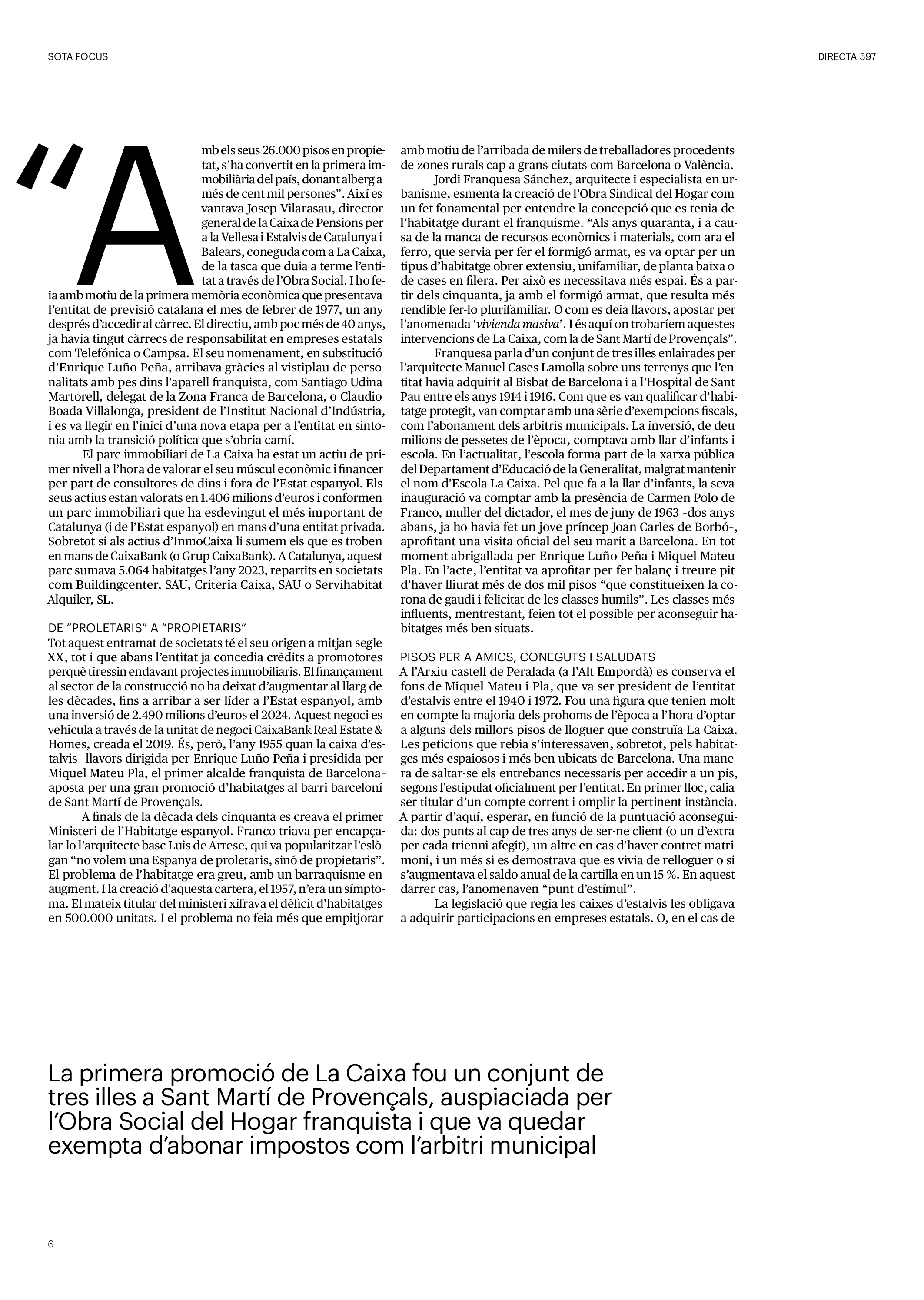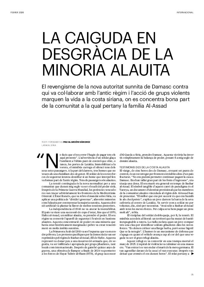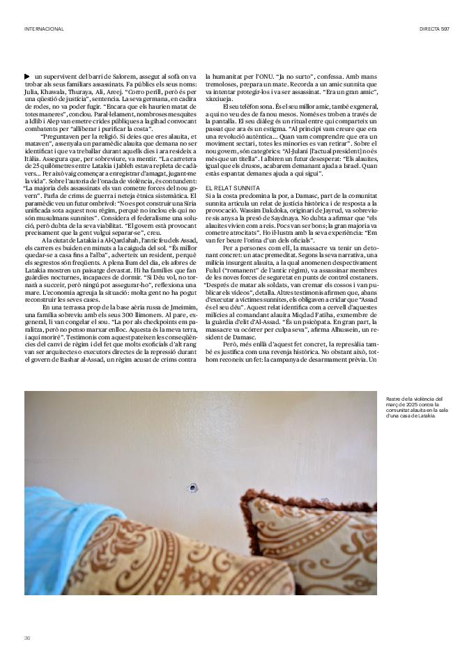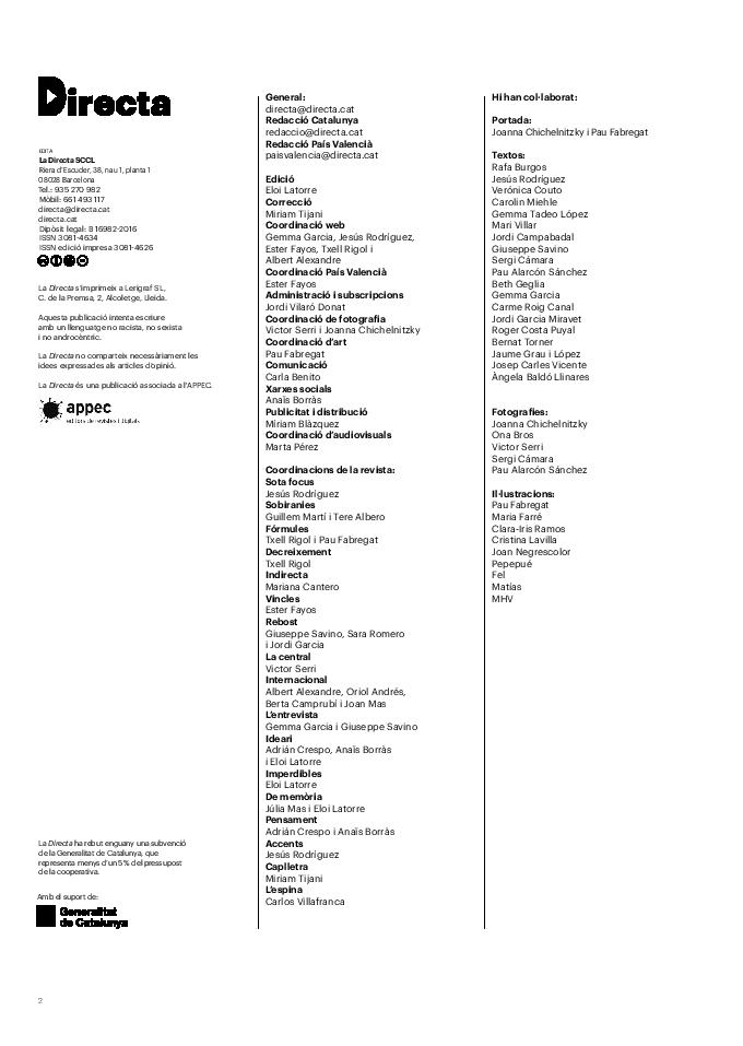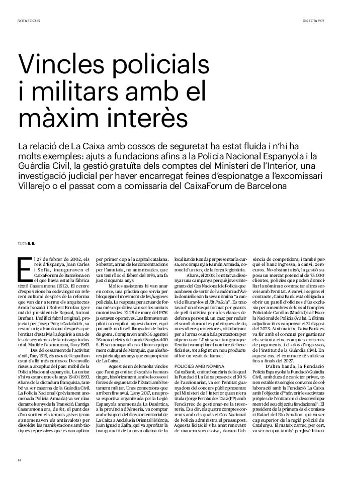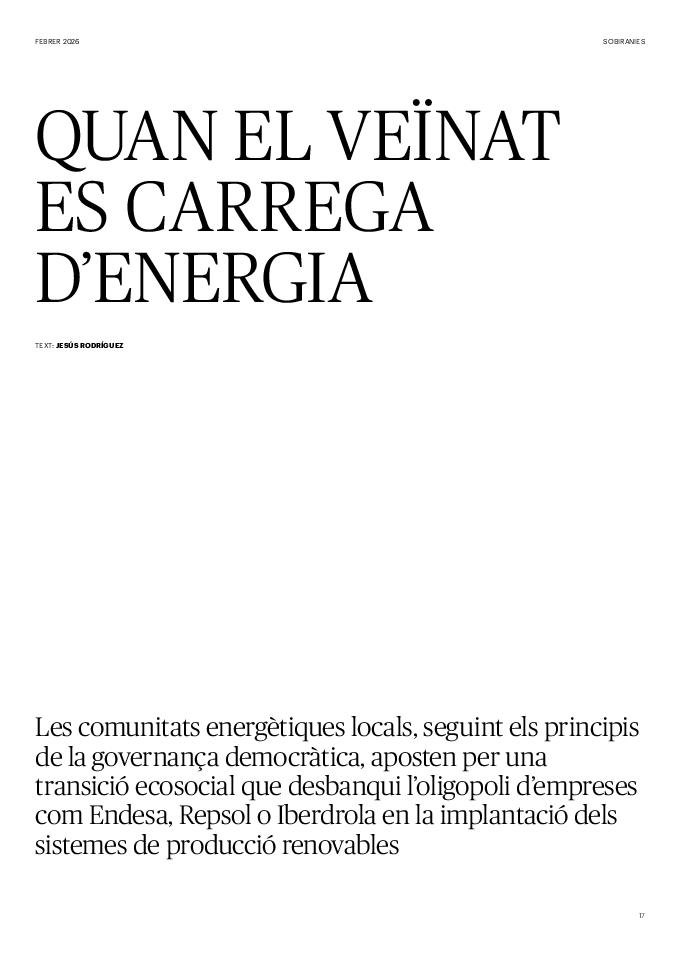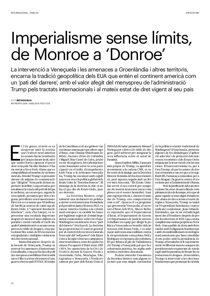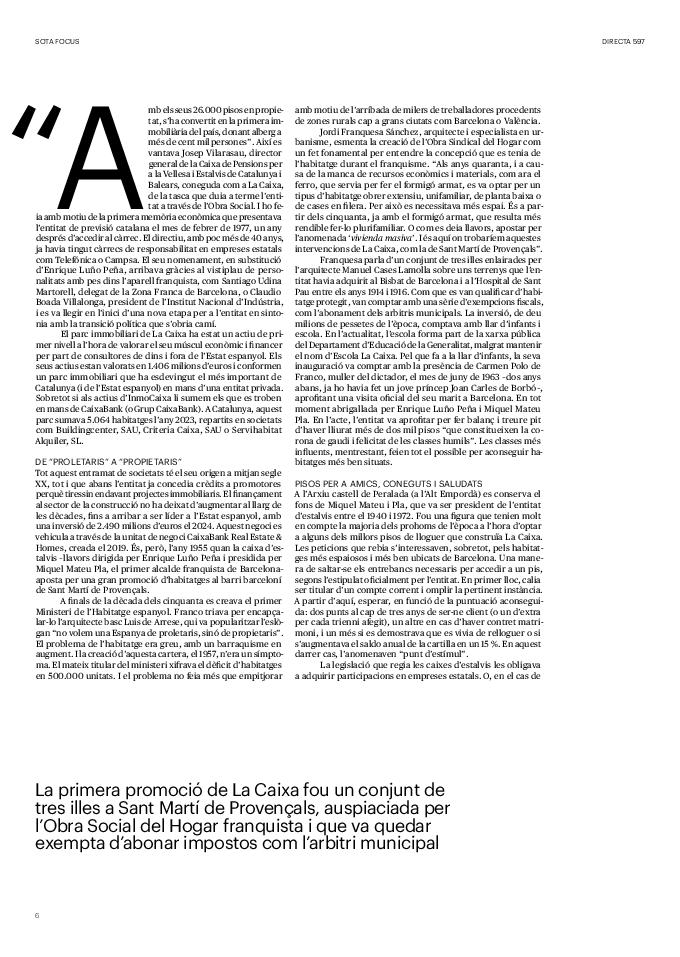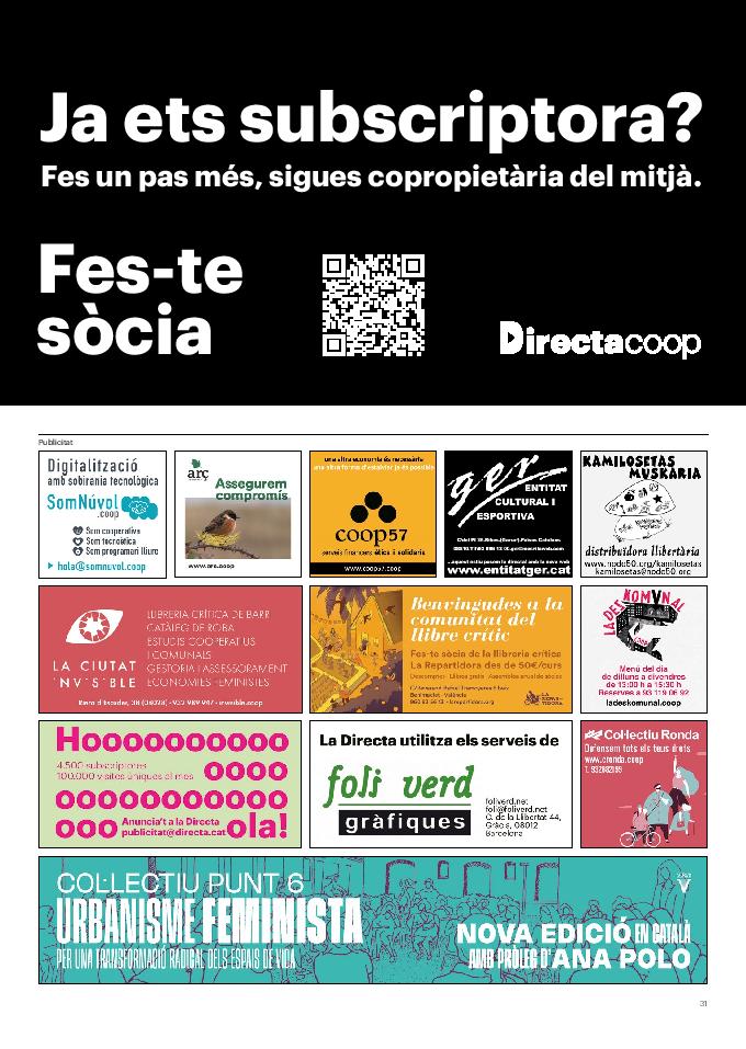 'Directa 597' Pantalla completa Descarregar 1 2-3 4-5 6-7 8-9 10-11 12-13 14-15 16-17 18-19 20-21 22-23 24-25 26-27 28-29 30-31 32-33 34-35 36-37 38-39 40-41 42-43 44-45 46-47 48-49 50-51 52-53 54-55 56-57 58-59 60-61 62-63 SOTA FOCUS Sota Focus L’ànima franquista del negoci immobiliari de La Caixa Rafa Burgos Imatges | Joanna Chichelnitzky Sota Focus De seu en seu a base de privilegis fiscals Rafa Burgos Imatges | Joanna Chichelnitzky Sota Focus Vincles policials i militars amb el màxim interès Rafa Burgos Imatges | Diputació de Màlaga INTERNACIONAL Internacional La caiguda en desgràcia de la minoria alauita Pau Alarcón Imatges | Pau Alarcón Internacional Imperialisme sense límits, de Monroe a ‘Donroe’ Beth Geglia Imatges | OTAN L'ENTREVISTA L'entrevista “El delicte de tortura no hauria de ser objecte d’indult ni d’amnistia” Gemma Garcia Imatges | Joanna Chichelnitzky SOBIRANIES Sobiranies Quan el veïnat es carrega d’energia Jesús Rodríguez Imatges | Ona Bros (La Fuga Coop) Fórmules Boscos madurs, us necessitem Verónica Couto Antelo Decreixement Renda bàsica universal, una eina al servei del sindicalisme ecologista Carolin Miehle Imatges | Maria Farré Vincles El feminisme de classe i el desig de maternitat Gemma Tadeo López Mari Villar Imatges | Clara-Iris Ramos Indirecta “A Mèxic som les famílies, i no l’autoritat, qui cerca desapareguts” Jordi Campabadal Graus Imatges | Victor Serri Rebost Taronja, una riquesa massa espremuda Giuseppe Savino IDEARI Ideari La tendresa va en direcció contrària Carme Roig Canal Imatges | Joanna Chichelnitzky Imperdibles Recuperem les cuines contra el consumisme dependent Jordi Garcia Miravet De memòria La ‘moguda’ jove d’aquella ‘Prospe’ punk i insubmisa Roger Costa Puyal Imatges | Cristina Lavilla Pensament Palestina i el crepuscle de la humanitat Bernat Torner Imatges | Joan Negrescolor Accents El problema no és la fauna, és la precarietat de la pagesia Jaume Grau i López Imatges | Pau Fabregat Accents Un sector perjudicat per anys d’inacció de les administracions Josep Carles Vicente Caplletra Rínxols d’or Àngela Baldó Llinares Imatges | Pepepue Donacions Fes una donació 5€ 10€ 20€ 50€ + FES UN DONATIU