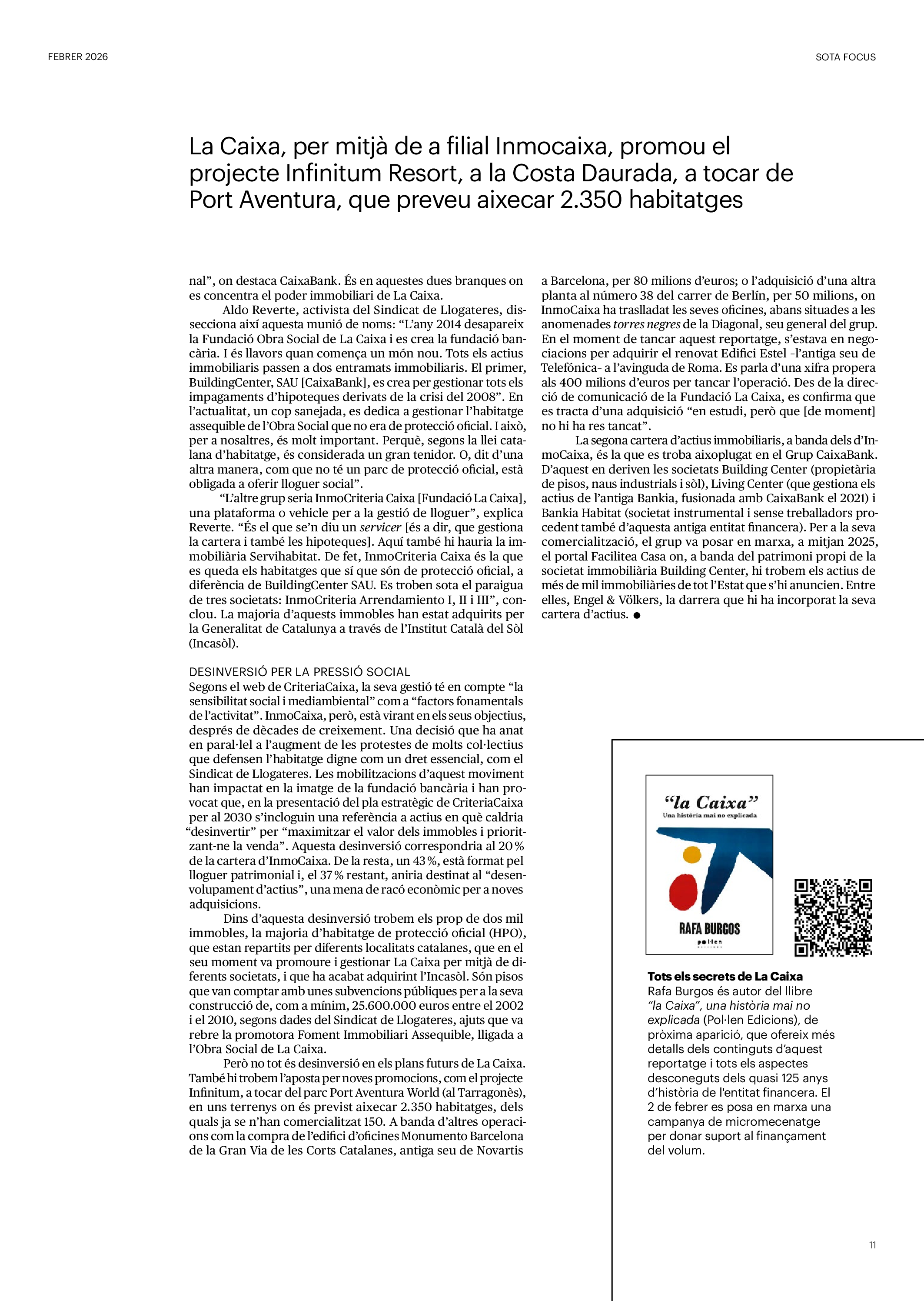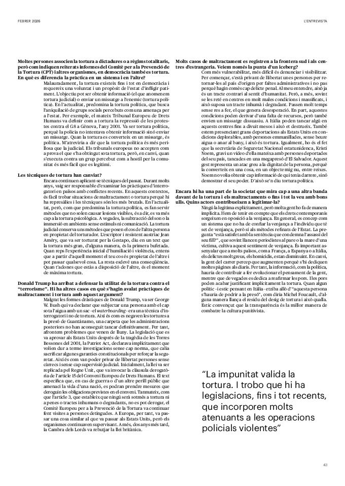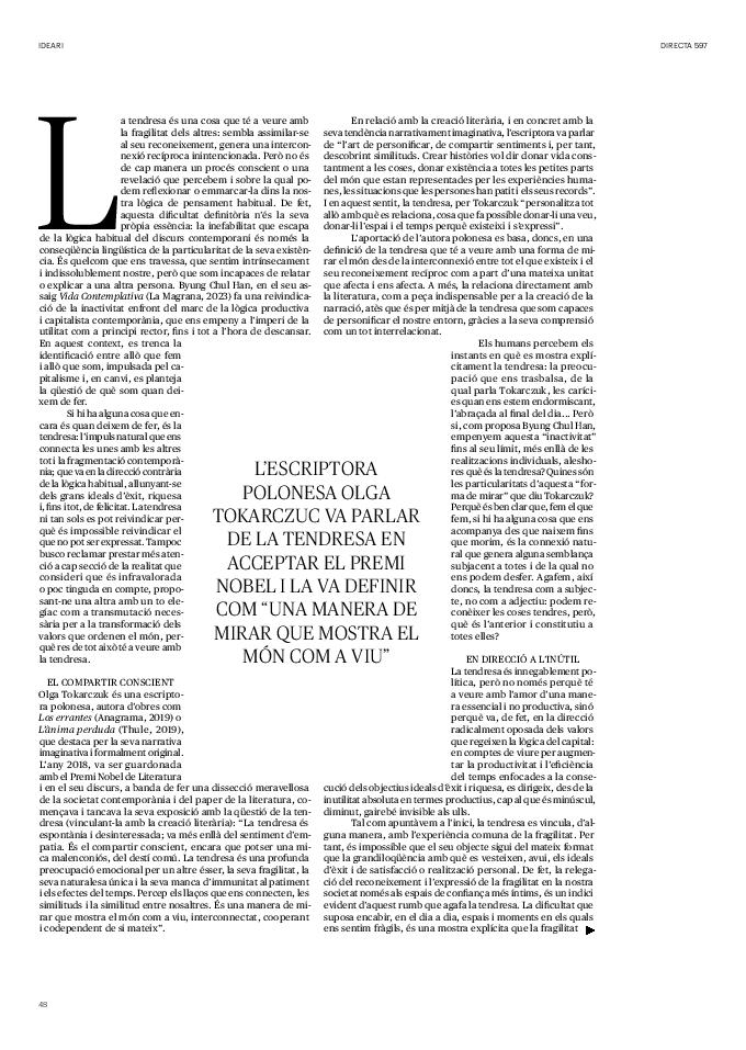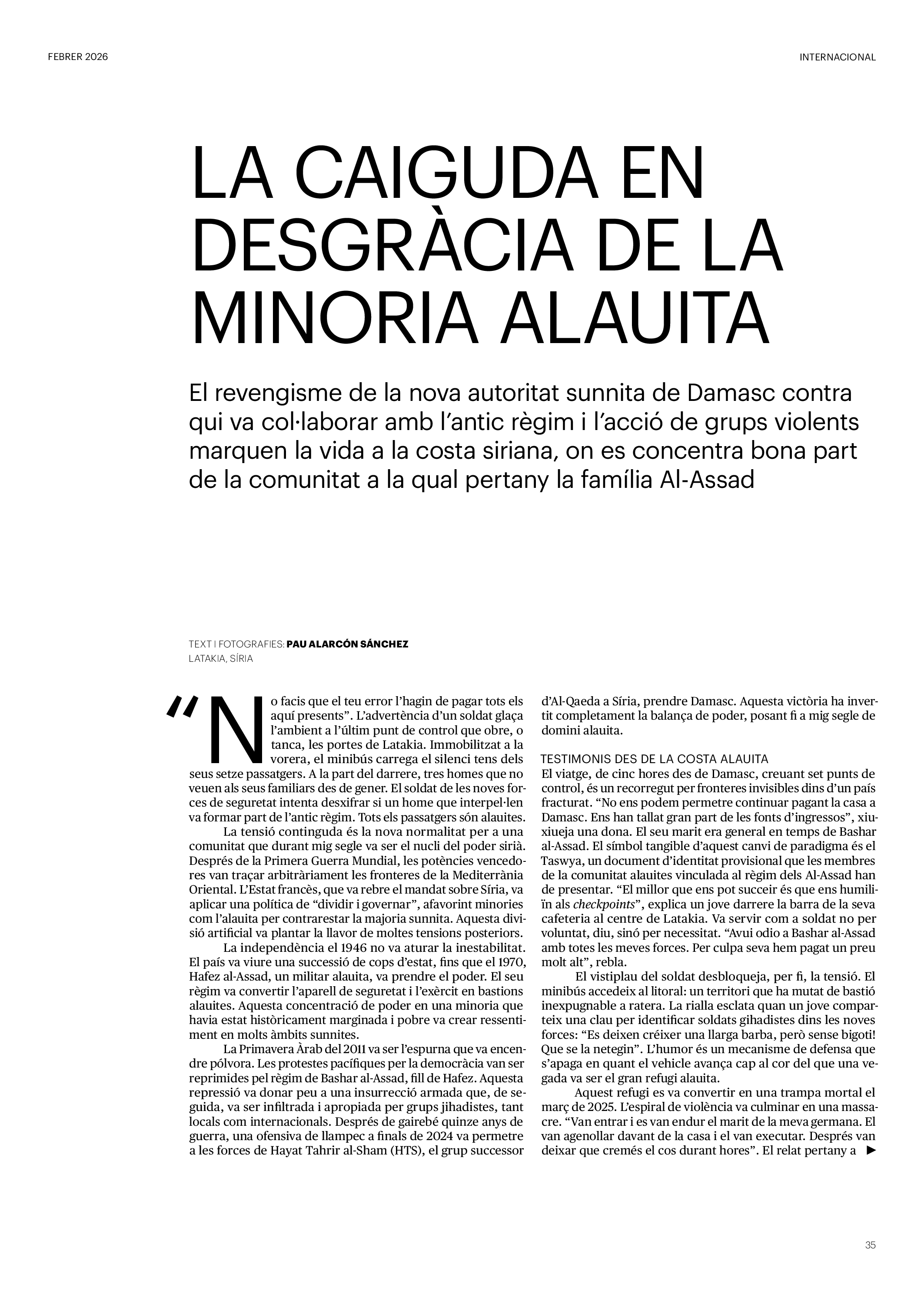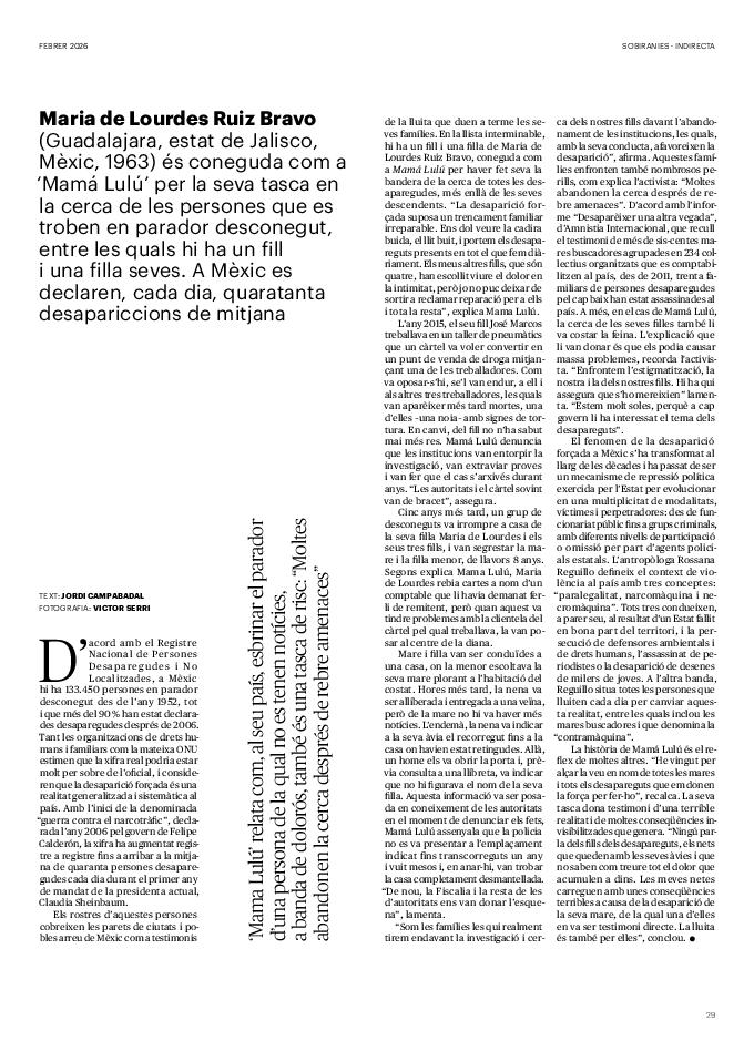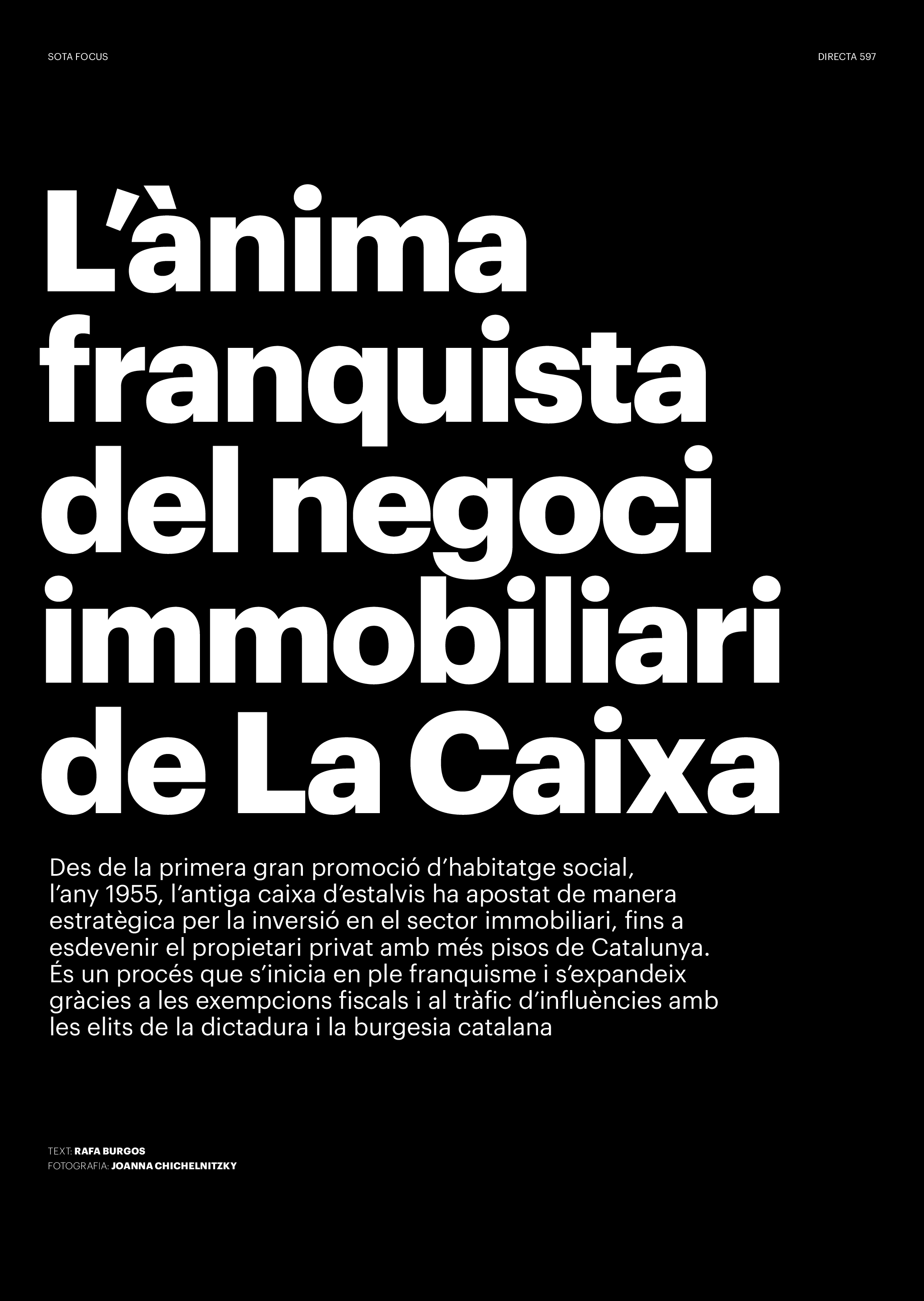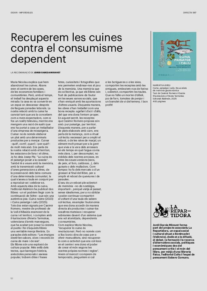 'Directa 597' Pantalla completa Descarregar 1 2-3 4-5 6-7 8-9 10-11 12-13 14-15 16-17 18-19 20-21 22-23 24-25 26-27 28-29 30-31 32-33 34-35 36-37 38-39 40-41 42-43 44-45 46-47 48-49 50-51 52-53 54-55 56-57 58-59 60-61 62-63 SOTA FOCUS Sota Focus L’ànima franquista del negoci immobiliari de La Caixa Rafa Burgos Imatges | Joanna Chichelnitzky Sota Focus De seu en seu a base de privilegis fiscals Rafa Burgos Imatges | Joanna Chichelnitzky Sota Focus Vincles policials i militars amb el màxim interès Rafa Burgos Imatges | Diputació de Màlaga INTERNACIONAL Internacional La caiguda en desgràcia de la minoria alauita Pau Alarcón Imatges | Pau Alarcón Internacional Imperialisme sense límits, de Monroe a ‘Donroe’ Beth Geglia Imatges | OTAN L'ENTREVISTA L'entrevista “El delicte de tortura no hauria de ser objecte d’indult ni d’amnistia” Gemma Garcia Imatges | Joanna Chichelnitzky SOBIRANIES Sobiranies Quan el veïnat es carrega d’energia Jesús Rodríguez Imatges | Ona Bros (La Fuga Coop) Fórmules Boscos madurs, us necessitem Verónica Couto Antelo Decreixement Renda bàsica universal, una eina al servei del sindicalisme ecologista Carolin Miehle Imatges | Maria Farré Vincles El feminisme de classe i el desig de maternitat Gemma Tadeo López Mari Villar Imatges | Clara-Iris Ramos Indirecta “A Mèxic som les famílies, i no l’autoritat, qui cerca desapareguts” Jordi Campabadal Graus Imatges | Victor Serri Rebost Taronja, una riquesa massa espremuda Giuseppe Savino IDEARI Ideari La tendresa va en direcció contrària Carme Roig Canal Imatges | Joanna Chichelnitzky Imperdibles Recuperem les cuines contra el consumisme dependent Jordi Garcia Miravet De memòria La ‘moguda’ jove d’aquella ‘Prospe’ punk i insubmisa Roger Costa Puyal Imatges | Cristina Lavilla Pensament Palestina i el crepuscle de la humanitat Bernat Torner Imatges | Joan Negrescolor Accents El problema no és la fauna, és la precarietat de la pagesia Jaume Grau i López Imatges | Pau Fabregat Accents Un sector perjudicat per anys d’inacció de les administracions Josep Carles Vicente Caplletra Rínxols d’or Àngela Baldó Llinares Imatges | Pepepue Donacions Fes una donació 5€ 10€ 20€ 50€ + FES UN DONATIU