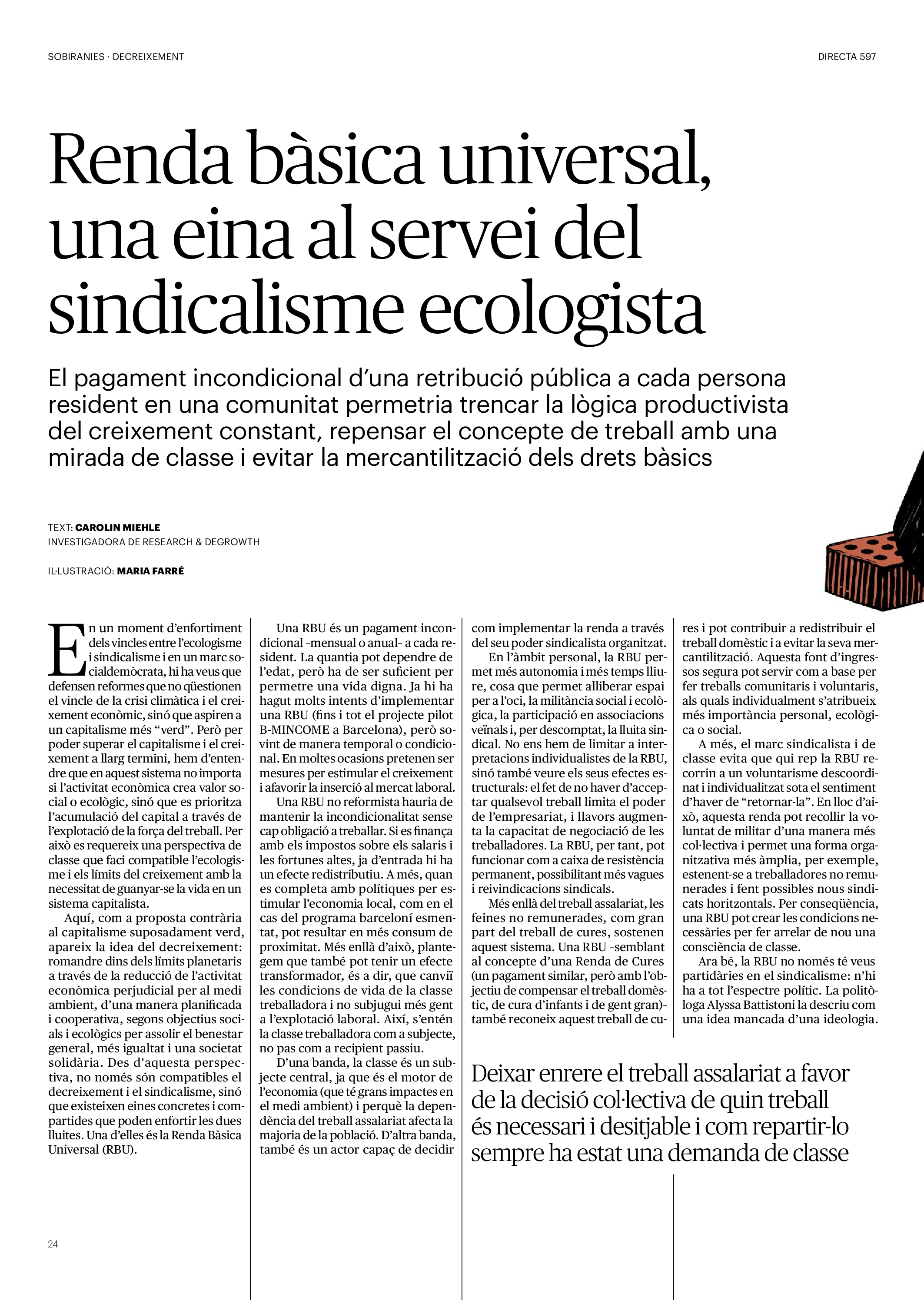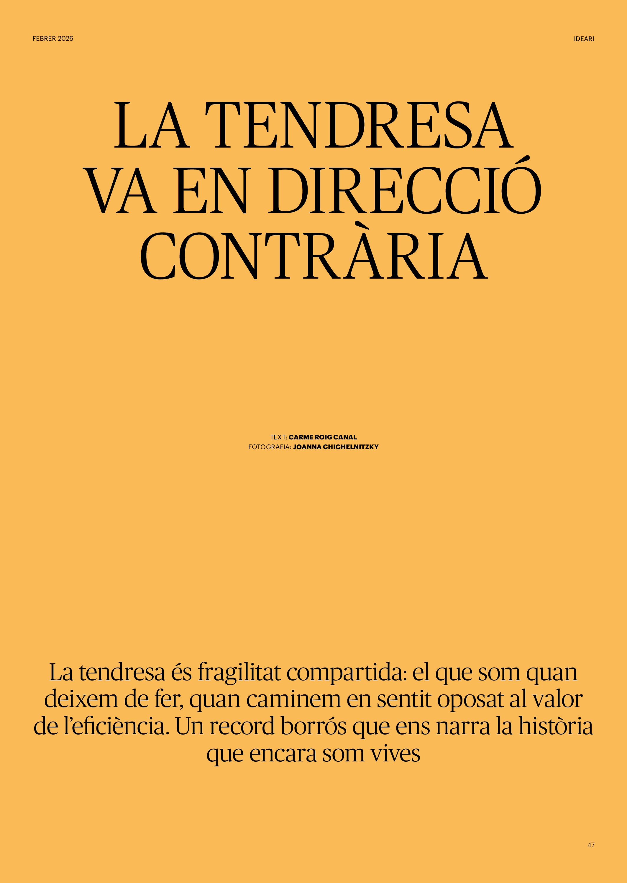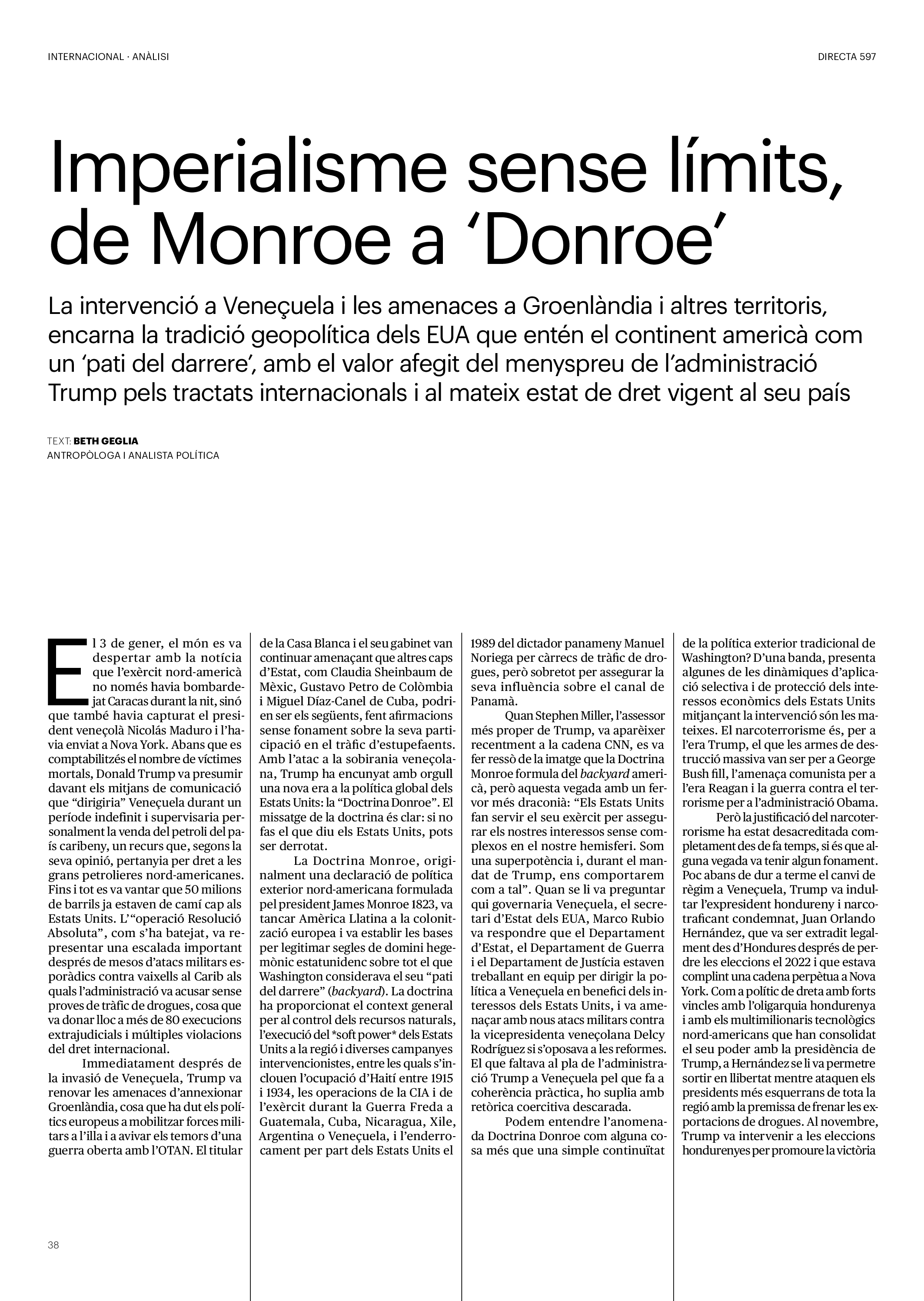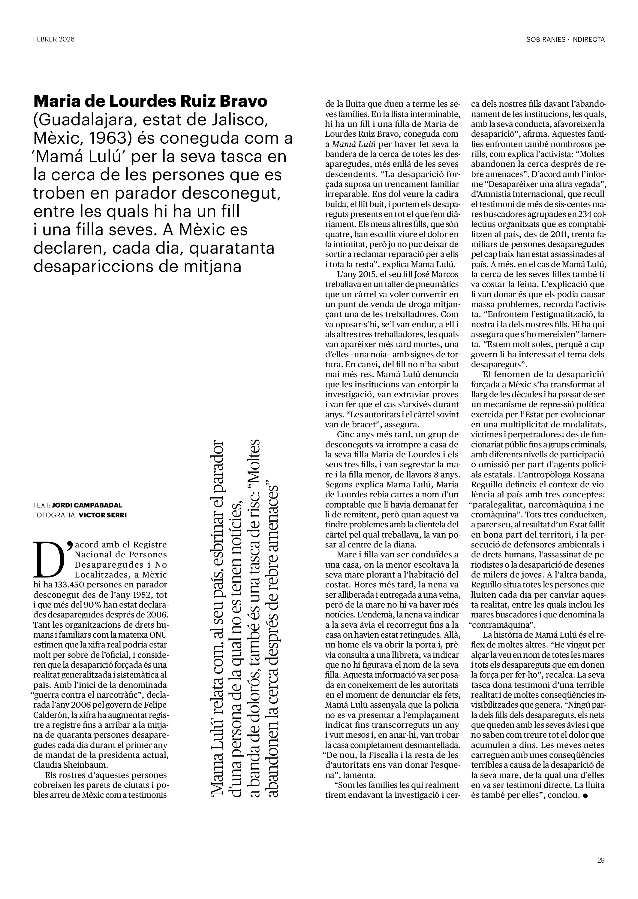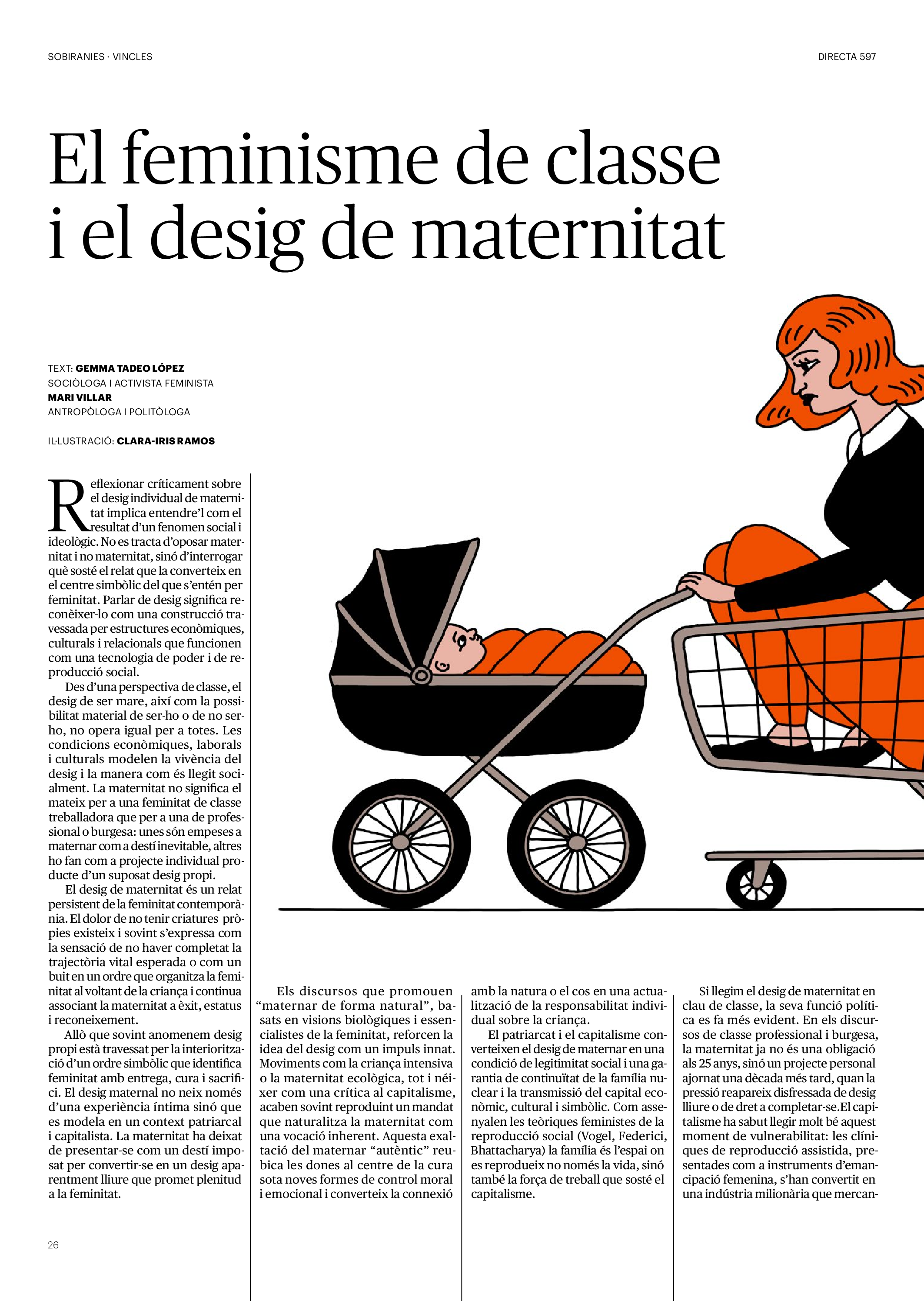 'Directa 597' Pantalla completa Descarregar 1 2-3 4-5 6-7 8-9 10-11 12-13 14-15 16-17 18-19 20-21 22-23 24-25 26-27 28-29 30-31 32-33 34-35 36-37 38-39 40-41 42-43 44-45 46-47 48-49 50-51 52-53 54-55 56-57 58-59 60-61 62-63 SOTA FOCUS Sota Focus L’ànima franquista del negoci immobiliari de La Caixa Rafa Burgos Imatges | Joanna Chichelnitzky Sota Focus De seu en seu a base de privilegis fiscals Rafa Burgos Imatges | Joanna Chichelnitzky Sota Focus Vincles policials i militars amb el màxim interès Rafa Burgos Imatges | Diputació de Màlaga INTERNACIONAL Internacional La caiguda en desgràcia de la minoria alauita Pau Alarcón Imatges | Pau Alarcón Internacional Imperialisme sense límits, de Monroe a ‘Donroe’ Beth Geglia Imatges | OTAN L'ENTREVISTA L'entrevista “El delicte de tortura no hauria de ser objecte d’indult ni d’amnistia” Gemma Garcia Imatges | Joanna Chichelnitzky SOBIRANIES Sobiranies Quan el veïnat es carrega d’energia Jesús Rodríguez Imatges | Ona Bros (La Fuga Coop) Fórmules Boscos madurs, us necessitem Verónica Couto Antelo Decreixement Renda bàsica universal, una eina al servei del sindicalisme ecologista Carolin Miehle Imatges | Maria Farré Vincles El feminisme de classe i el desig de maternitat Gemma Tadeo López Mari Villar Imatges | Clara-Iris Ramos Indirecta “A Mèxic som les famílies, i no l’autoritat, qui cerca desapareguts” Jordi Campabadal Graus Imatges | Victor Serri Rebost Taronja, una riquesa massa espremuda Giuseppe Savino IDEARI Ideari La tendresa va en direcció contrària Carme Roig Canal Imatges | Joanna Chichelnitzky Imperdibles Recuperem les cuines contra el consumisme dependent Jordi Garcia Miravet De memòria La ‘moguda’ jove d’aquella ‘Prospe’ punk i insubmisa Roger Costa Puyal Imatges | Cristina Lavilla Pensament Palestina i el crepuscle de la humanitat Bernat Torner Imatges | Joan Negrescolor Accents El problema no és la fauna, és la precarietat de la pagesia Jaume Grau i López Imatges | Pau Fabregat Accents Un sector perjudicat per anys d’inacció de les administracions Josep Carles Vicente Caplletra Rínxols d’or Àngela Baldó Llinares Imatges | Pepepue Donacions Fes una donació 5€ 10€ 20€ 50€ + FES UN DONATIU