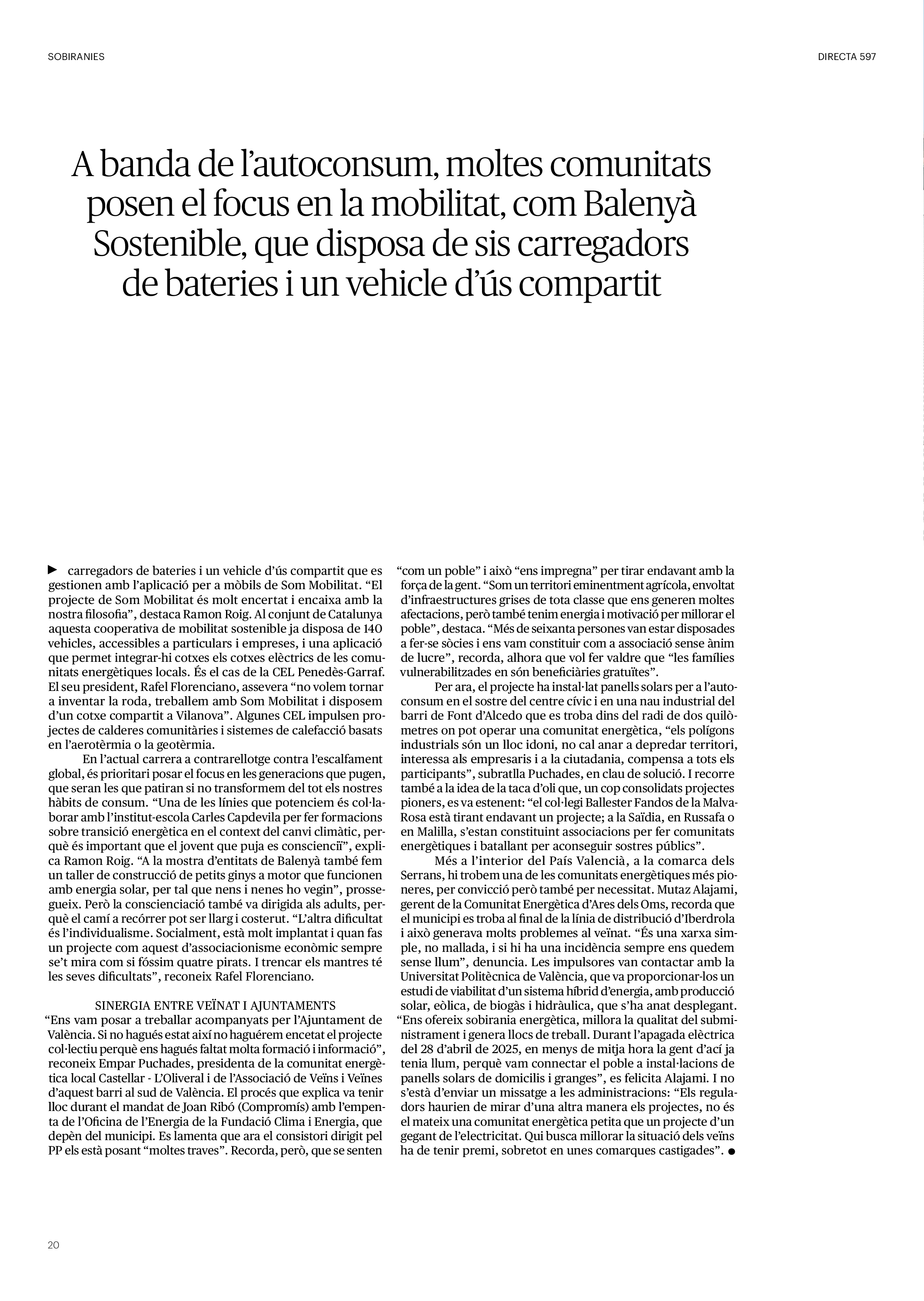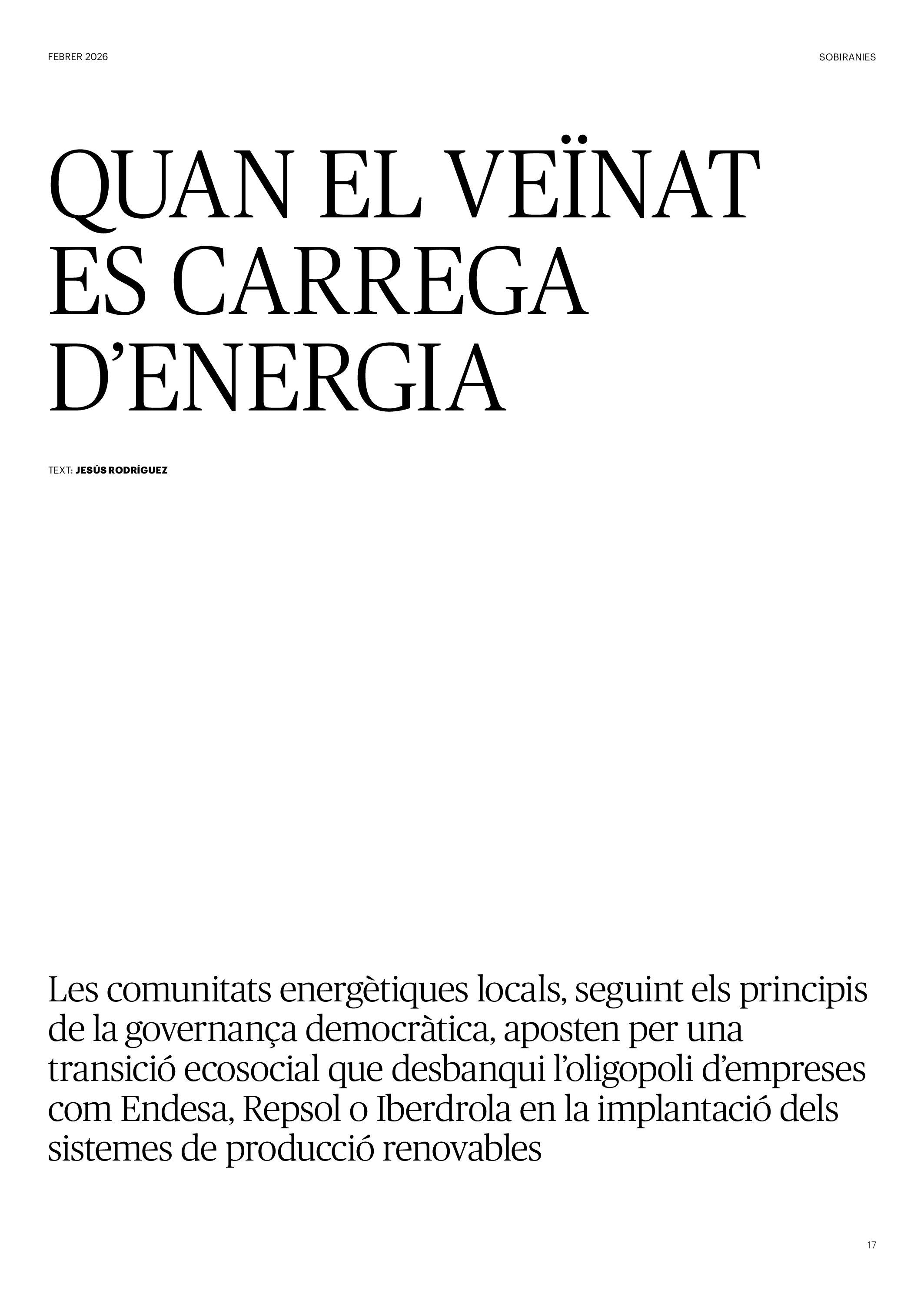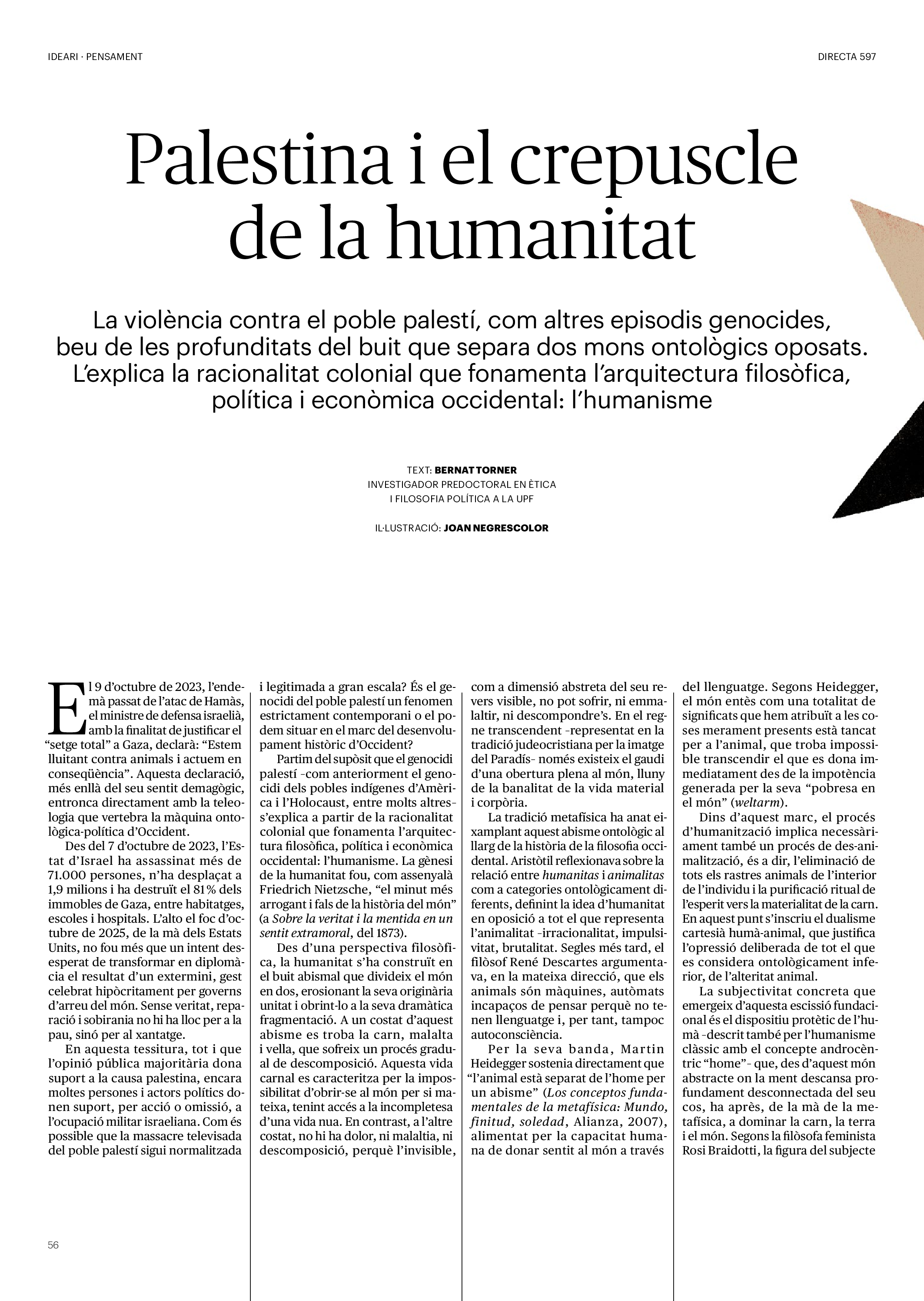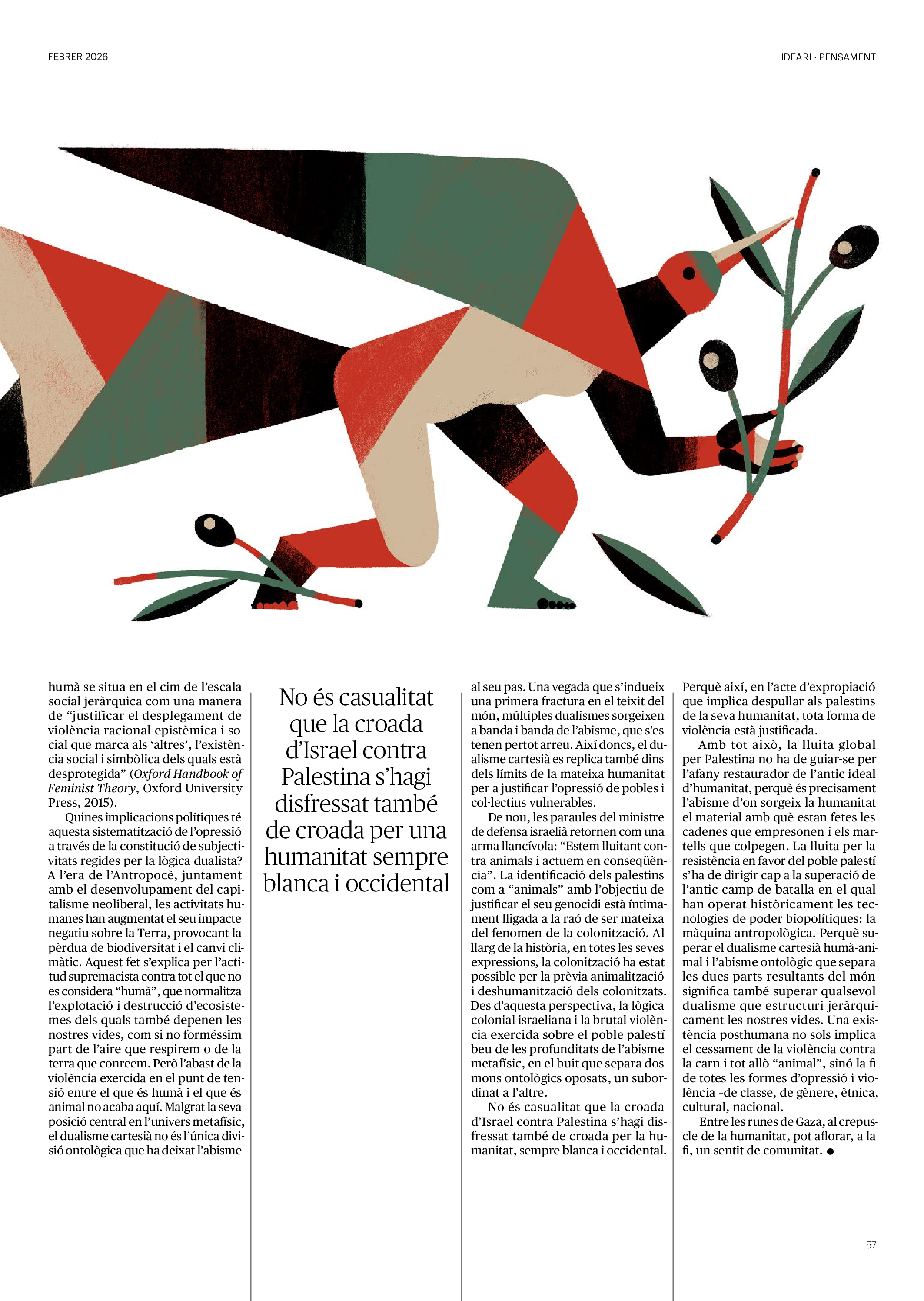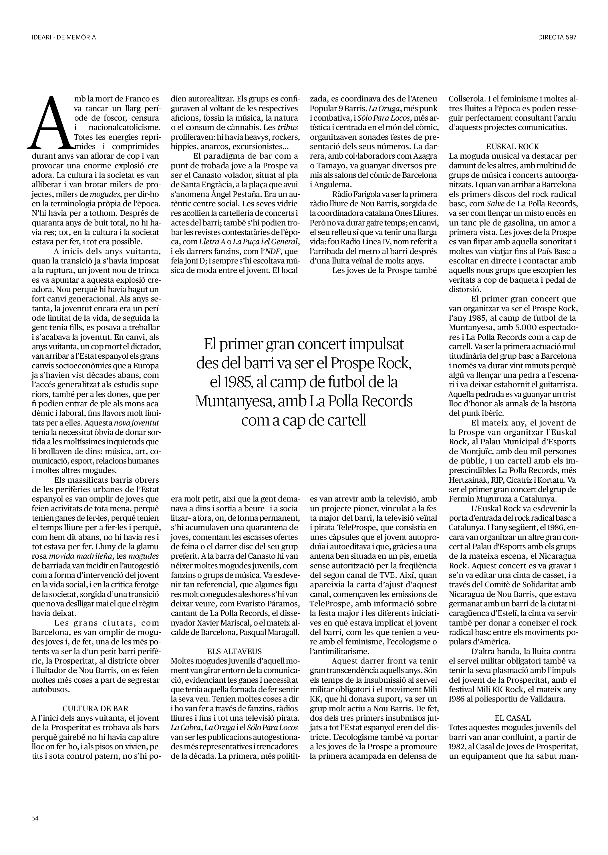 'Directa 597' Pantalla completa Descarregar 1 2-3 4-5 6-7 8-9 10-11 12-13 14-15 16-17 18-19 20-21 22-23 24-25 26-27 28-29 30-31 32-33 34-35 36-37 38-39 40-41 42-43 44-45 46-47 48-49 50-51 52-53 54-55 56-57 58-59 60-61 62-63 SOTA FOCUS Sota Focus L’ànima franquista del negoci immobiliari de La Caixa Rafa Burgos Imatges | Joanna Chichelnitzky Sota Focus De seu en seu a base de privilegis fiscals Rafa Burgos Imatges | Joanna Chichelnitzky Sota Focus Vincles policials i militars amb el màxim interès Rafa Burgos Imatges | Diputació de Màlaga INTERNACIONAL Internacional La caiguda en desgràcia de la minoria alauita Pau Alarcón Imatges | Pau Alarcón Internacional Imperialisme sense límits, de Monroe a ‘Donroe’ Beth Geglia Imatges | OTAN L'ENTREVISTA L'entrevista “El delicte de tortura no hauria de ser objecte d’indult ni d’amnistia” Gemma Garcia Imatges | Joanna Chichelnitzky SOBIRANIES Sobiranies Quan el veïnat es carrega d’energia Jesús Rodríguez Imatges | Ona Bros (La Fuga Coop) Fórmules Boscos madurs, us necessitem Verónica Couto Antelo Decreixement Renda bàsica universal, una eina al servei del sindicalisme ecologista Carolin Miehle Imatges | Maria Farré Vincles El feminisme de classe i el desig de maternitat Gemma Tadeo López Mari Villar Imatges | Clara-Iris Ramos Indirecta “A Mèxic som les famílies, i no l’autoritat, qui cerca desapareguts” Jordi Campabadal Graus Imatges | Victor Serri Rebost Taronja, una riquesa massa espremuda Giuseppe Savino IDEARI Ideari La tendresa va en direcció contrària Carme Roig Canal Imatges | Joanna Chichelnitzky Imperdibles Recuperem les cuines contra el consumisme dependent Jordi Garcia Miravet De memòria La ‘moguda’ jove d’aquella ‘Prospe’ punk i insubmisa Roger Costa Puyal Imatges | Cristina Lavilla Pensament Palestina i el crepuscle de la humanitat Bernat Torner Imatges | Joan Negrescolor Accents El problema no és la fauna, és la precarietat de la pagesia Jaume Grau i López Imatges | Pau Fabregat Accents Un sector perjudicat per anys d’inacció de les administracions Josep Carles Vicente Caplletra Rínxols d’or Àngela Baldó Llinares Imatges | Pepepue Donacions Fes una donació 5€ 10€ 20€ 50€ + FES UN DONATIU