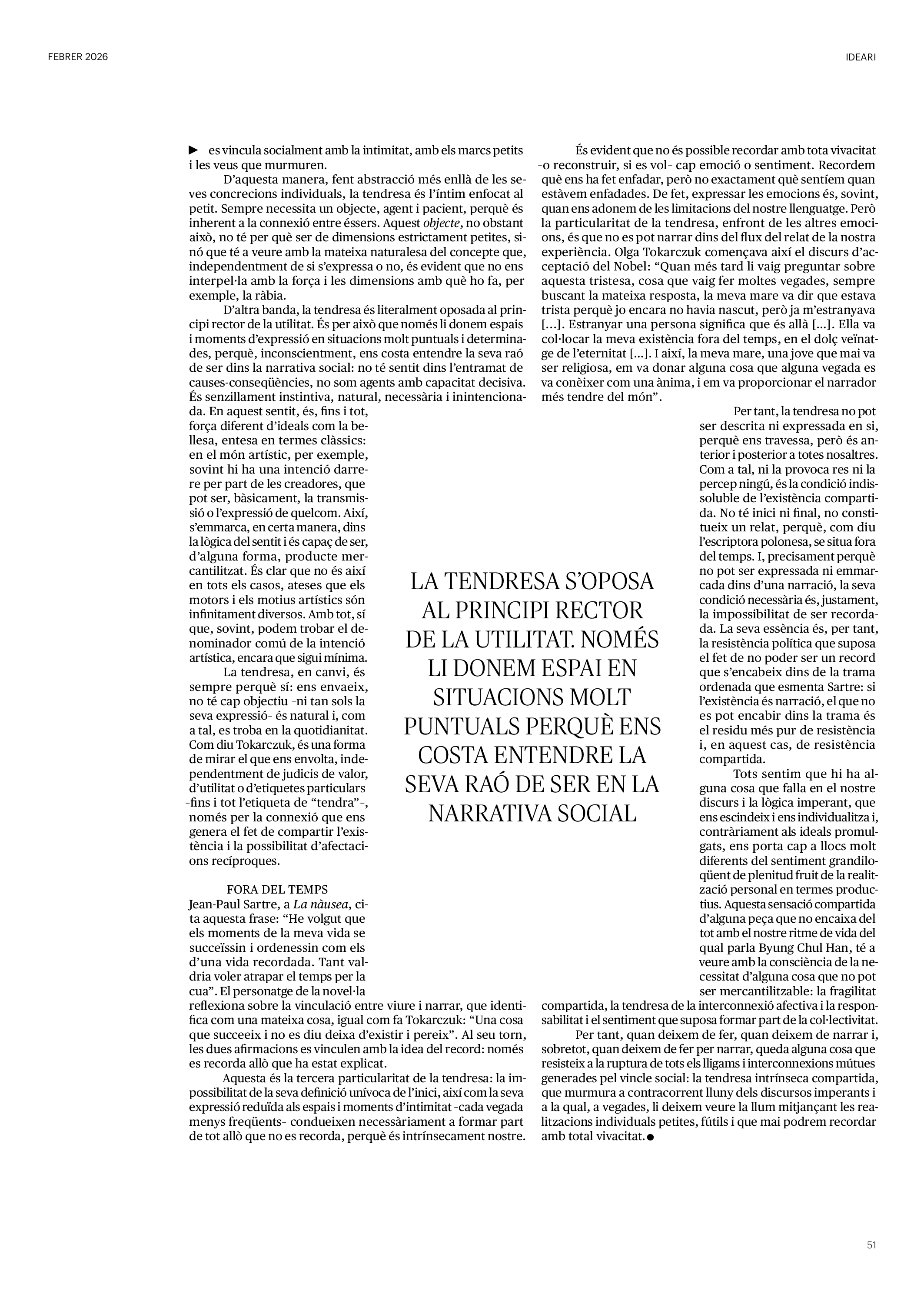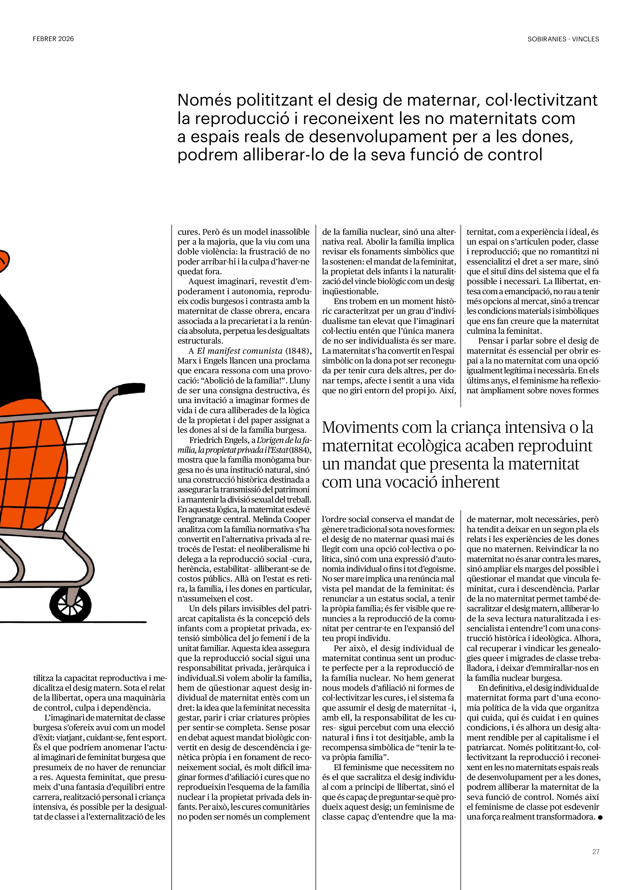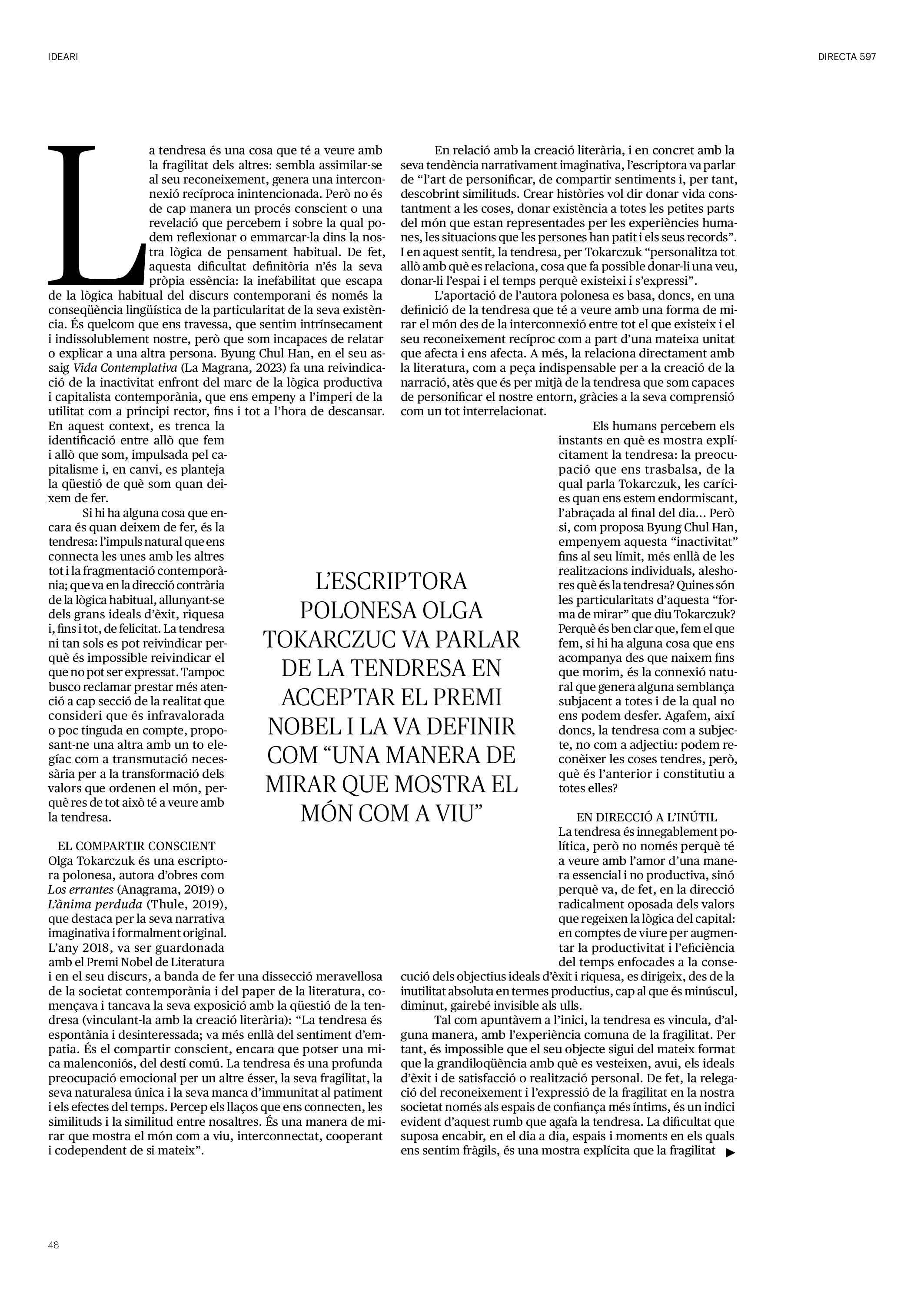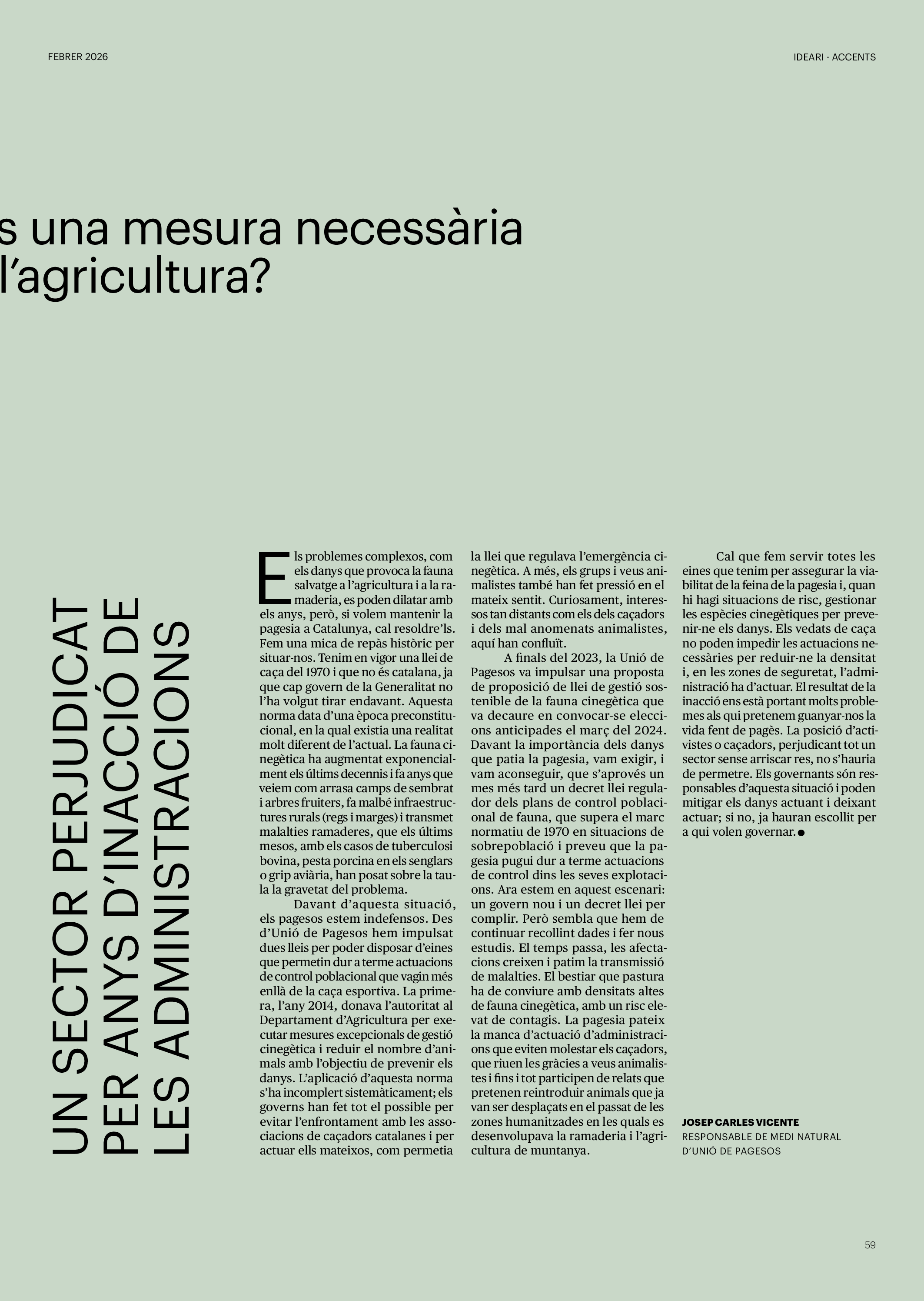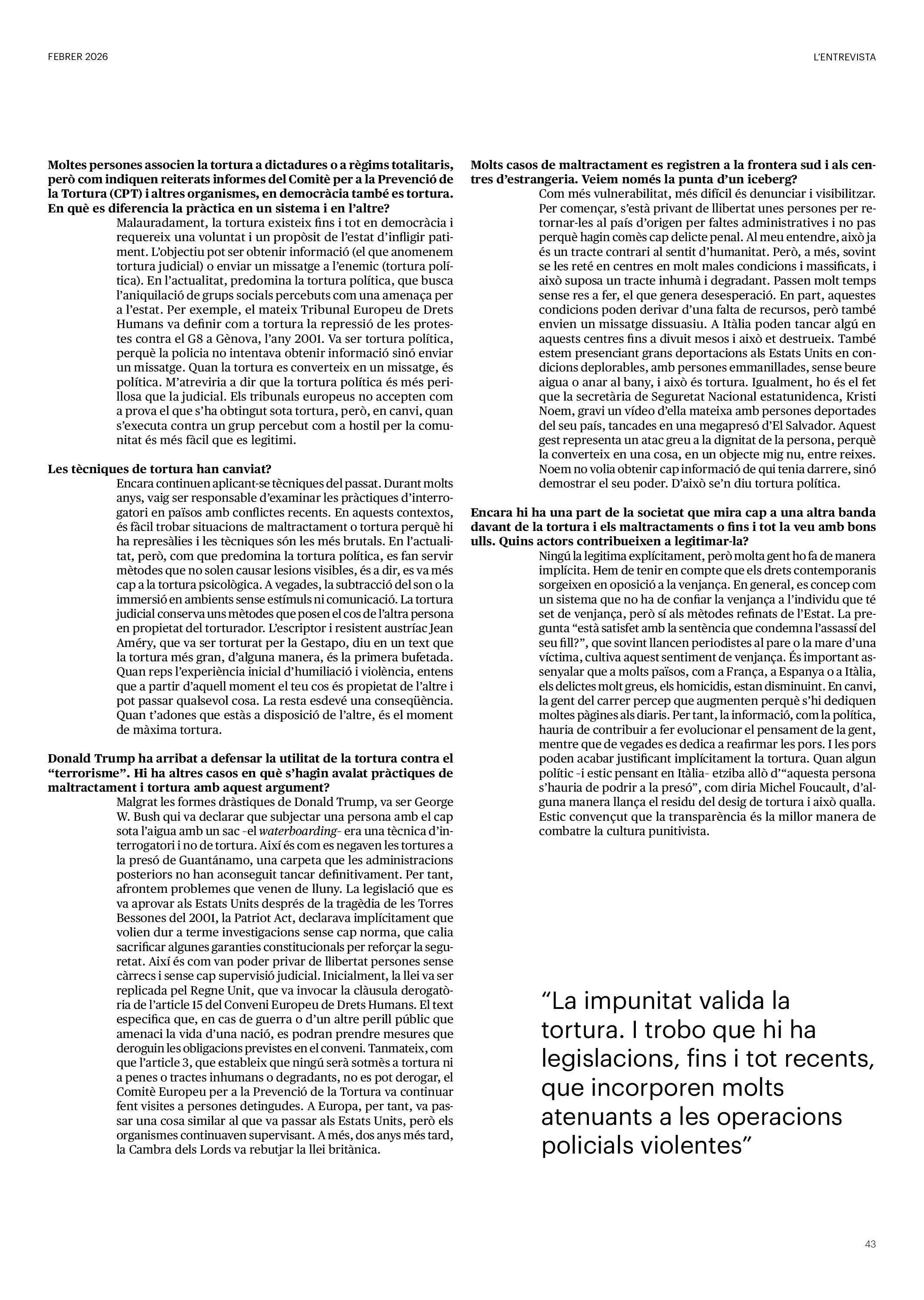'Directa 597' Pantalla completa Descarregar 1 2-3 4-5 6-7 8-9 10-11 12-13 14-15 16-17 18-19 20-21 22-23 24-25 26-27 28-29 30-31 32-33 34-35 36-37 38-39 40-41 42-43 44-45 46-47 48-49 50-51 52-53 54-55 56-57 58-59 60-61 62-63 SOTA FOCUS Sota Focus L’ànima franquista del negoci immobiliari de La Caixa Rafa Burgos Imatges | Joanna Chichelnitzky Sota Focus De seu en seu a base de privilegis fiscals Rafa Burgos Imatges | Joanna Chichelnitzky Sota Focus Vincles policials i militars amb el màxim interès Rafa Burgos Imatges | Diputació de Màlaga INTERNACIONAL Internacional La caiguda en desgràcia de la minoria alauita Pau Alarcón Imatges | Pau Alarcón Internacional Imperialisme sense límits, de Monroe a ‘Donroe’ Beth Geglia Imatges | OTAN L'ENTREVISTA L'entrevista “El delicte de tortura no hauria de ser objecte d’indult ni d’amnistia” Gemma Garcia Imatges | Joanna Chichelnitzky SOBIRANIES Sobiranies Quan el veïnat es carrega d’energia Jesús Rodríguez Imatges | Ona Bros (La Fuga Coop) Fórmules Boscos madurs, us necessitem Verónica Couto Antelo Decreixement Renda bàsica universal, una eina al servei del sindicalisme ecologista Carolin Miehle Imatges | Maria Farré Vincles El feminisme de classe i el desig de maternitat Gemma Tadeo López Mari Villar Imatges | Clara-Iris Ramos Indirecta “A Mèxic som les famílies, i no l’autoritat, qui cerca desapareguts” Jordi Campabadal Graus Imatges | Victor Serri Rebost Taronja, una riquesa massa espremuda Giuseppe Savino IDEARI Ideari La tendresa va en direcció contrària Carme Roig Canal Imatges | Joanna Chichelnitzky Imperdibles Recuperem les cuines contra el consumisme dependent Jordi Garcia Miravet De memòria La ‘moguda’ jove d’aquella ‘Prospe’ punk i insubmisa Roger Costa Puyal Imatges | Cristina Lavilla Pensament Palestina i el crepuscle de la humanitat Bernat Torner Imatges | Joan Negrescolor Accents El problema no és la fauna, és la precarietat de la pagesia Jaume Grau i López Imatges | Pau Fabregat Accents Un sector perjudicat per anys d’inacció de les administracions Josep Carles Vicente Caplletra Rínxols d’or Àngela Baldó Llinares Imatges | Pepepue Donacions Fes una donació 5€ 10€ 20€ 50€ + FES UN DONATIU