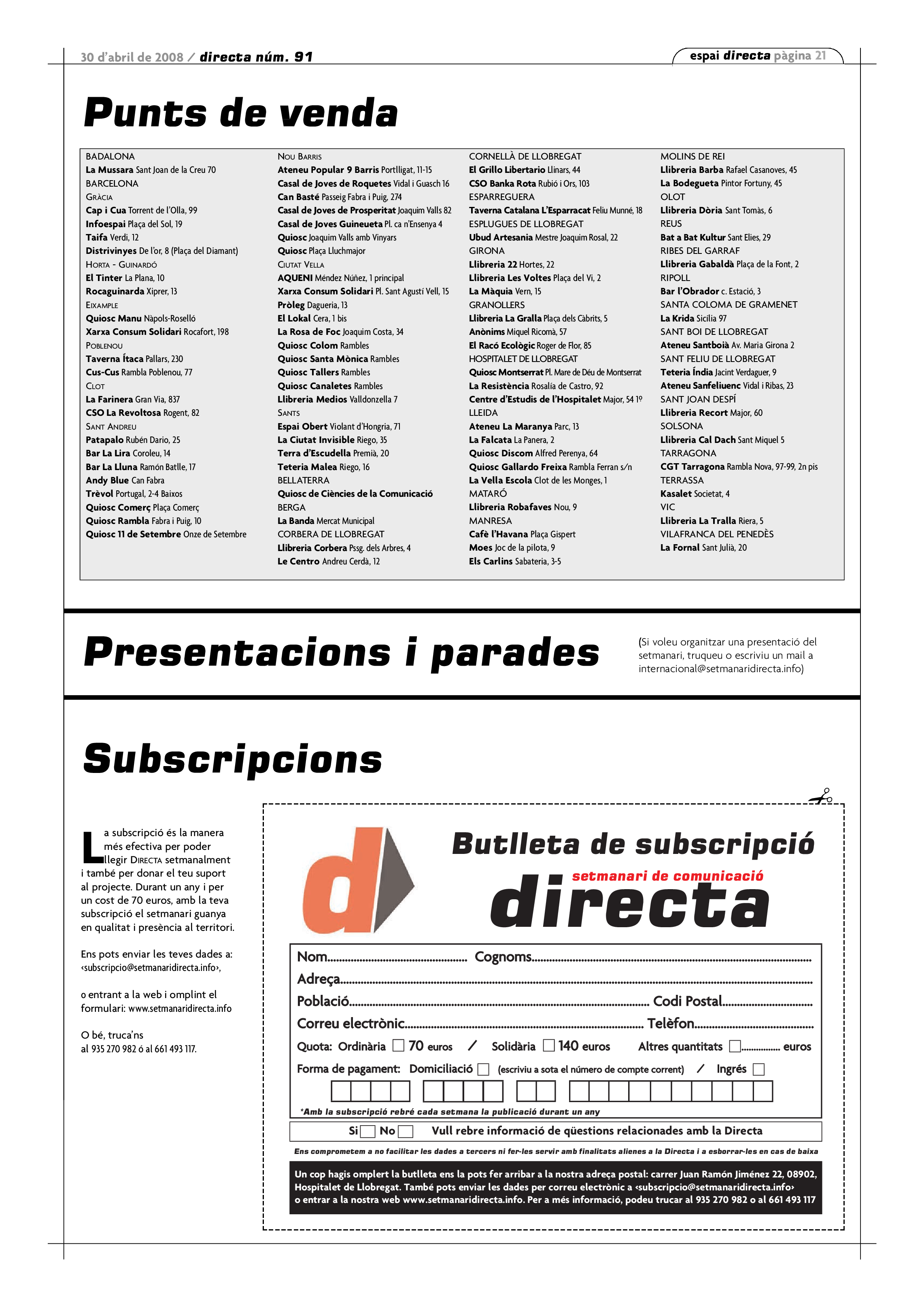 'Directa 91' Pantalla completa Descarregar 1 2-3 4-5 6-7 8-9 10-11 12-13 14-15 16-17 18-19 20-21 22-23 24-25 26-27 Donacions Fes una donació 5€ 10€ 20€ 50€ + FES UN DONATIU