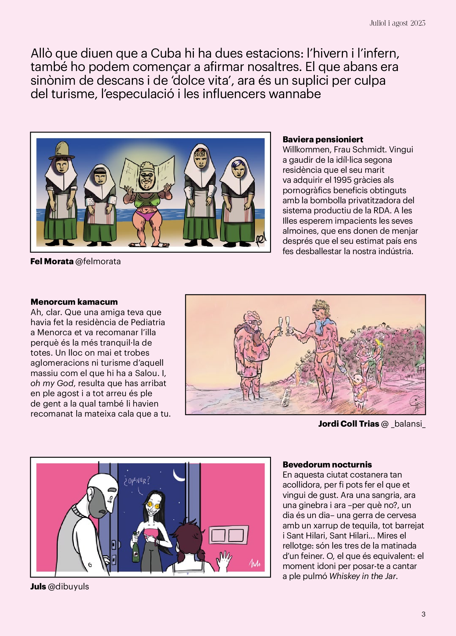 Quadern 'Desistiu' Pantalla completa Descarregar 1 2-3 4-5 6-7 8-9 10-11 12-13 14-15 16-17 18-19 20-21 22-23 24-25 26-27 28-29 30-31 directa Vacances ideològiques Redacció Directa Desistiu Balcon league: un any d’alta volada Federació Balear de Balconing Desistiu El llarg estiu de la precarietat juvenil Ainhoa Lérida Imatges | Victor Serri Desistiu Una ‘selfie’ més, un espai natural menys Anna Celma Imatges | Arxiu Desistiu Franquisme ‘low cost’ a primera línia de mar Imatges | Arxiu Donacions Fes una donació 5€ 10€ 20€ 50€ + FES UN DONATIU